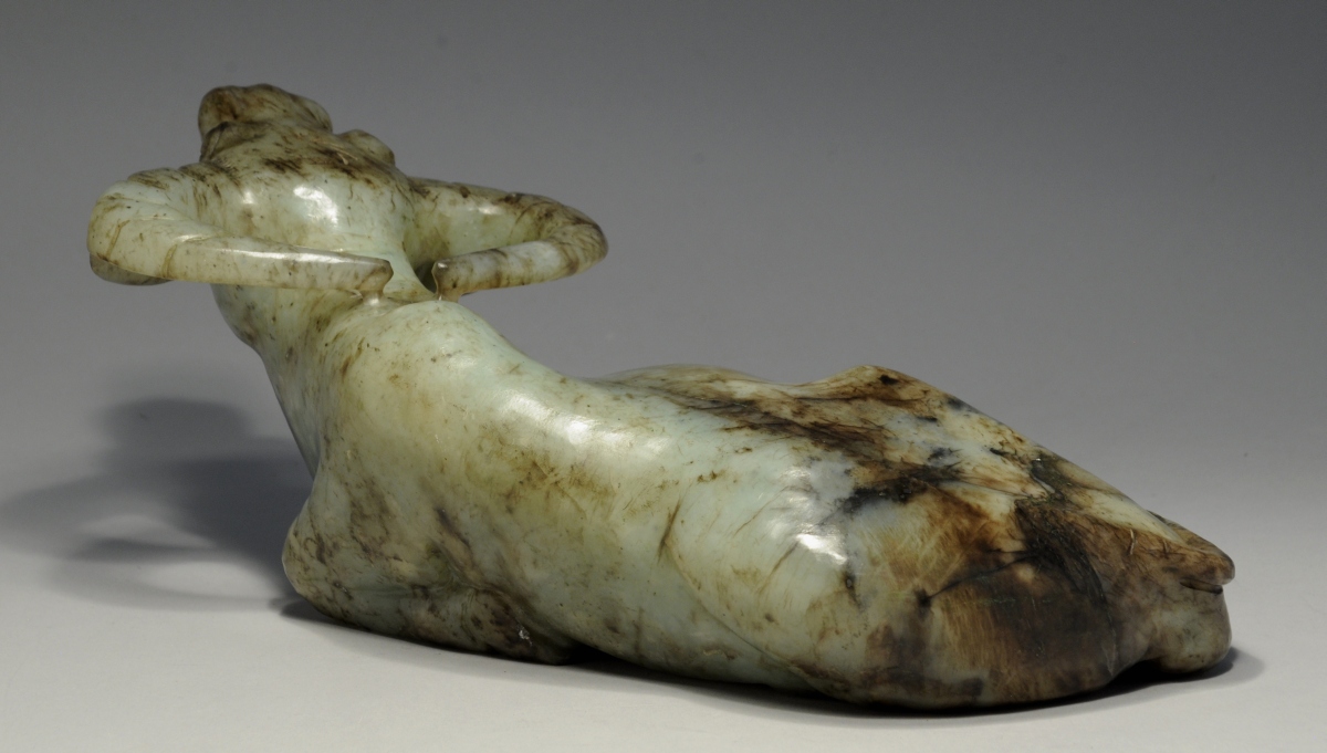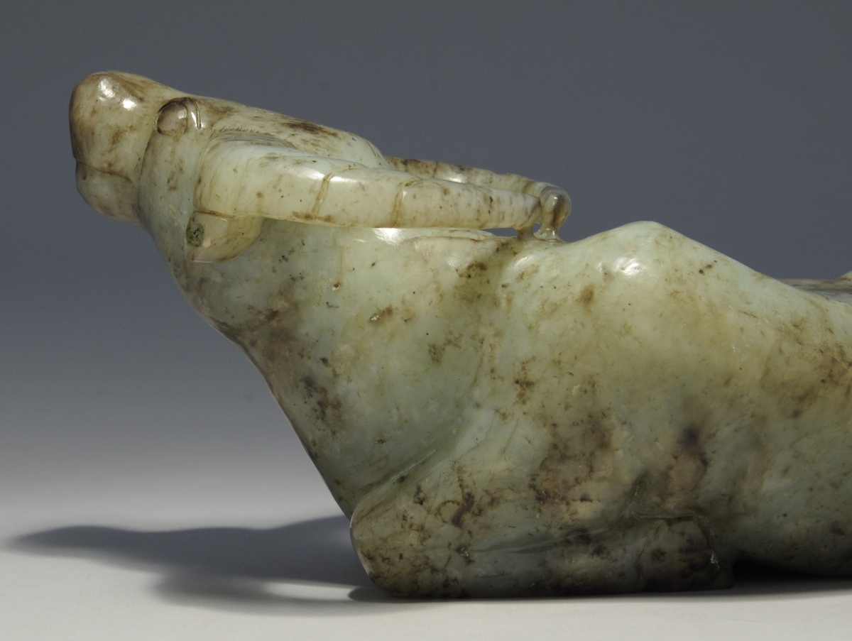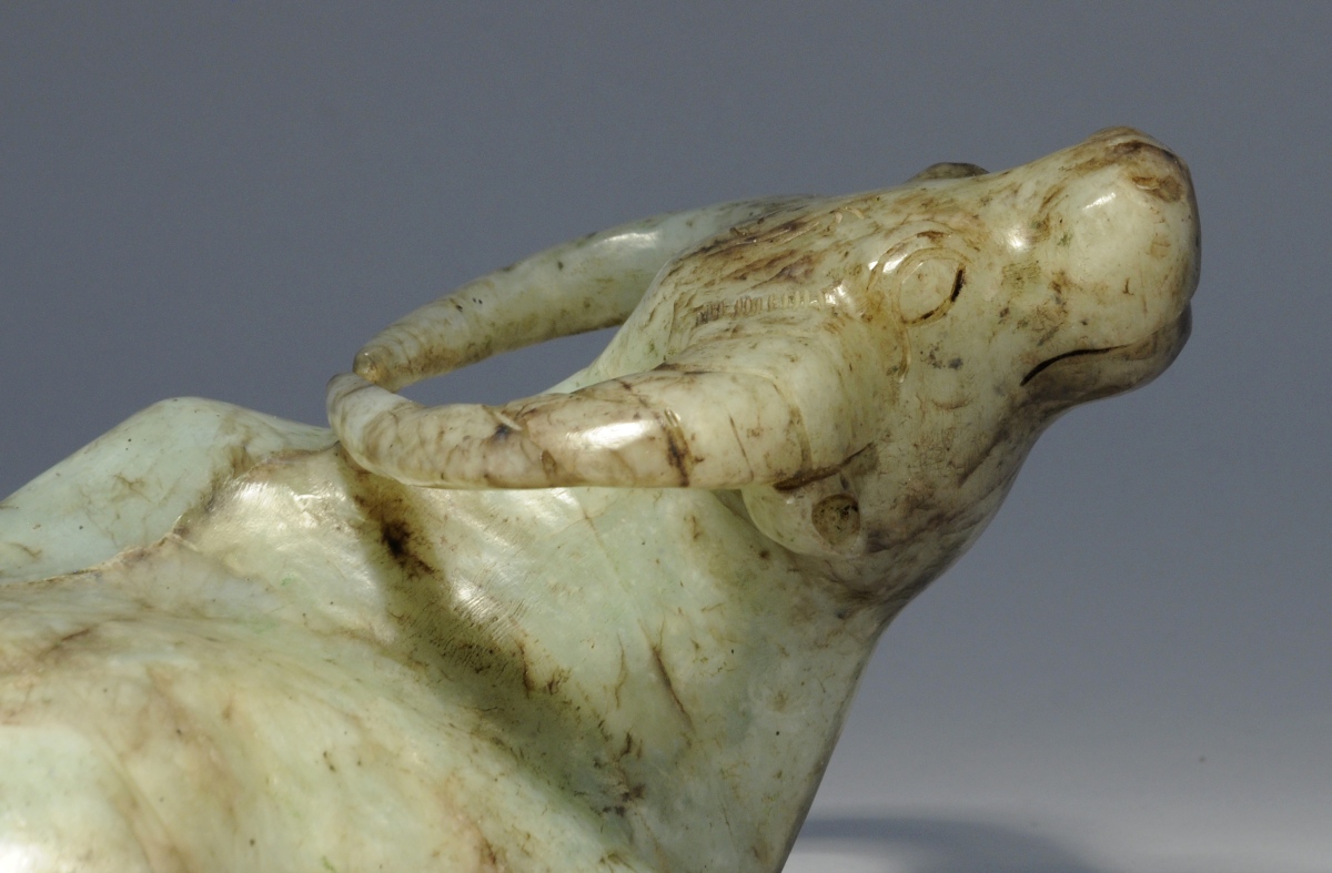 CHINE. BUFFLE ALLONGÉ en néphrite.