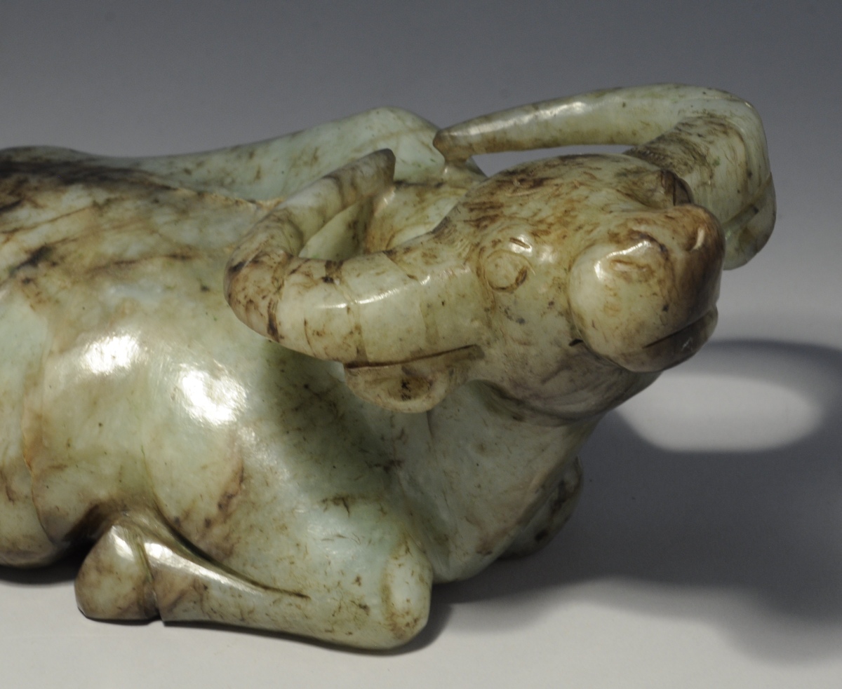 CHINE. BUFFLE ALLONGÉ en néphrite.XXe.Haut. 12 Long. 27 Prof. 11...