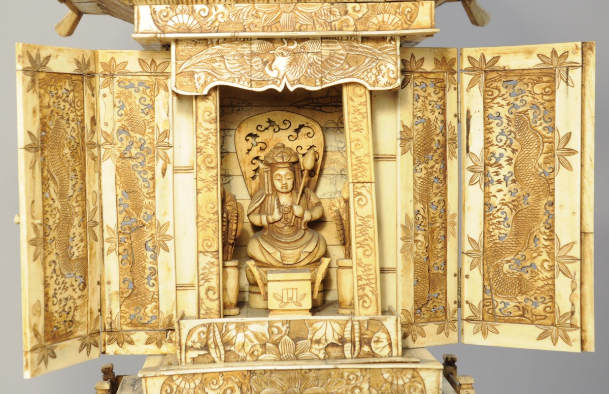 Provenance : collection Ernest Lind, inspecteur des douanes au Cambodge jusqu'en 1934. Cette pagode posée sur la cheminée est visible sur la photo du salon Lind vendu aux enchères à Cheverny en 2010