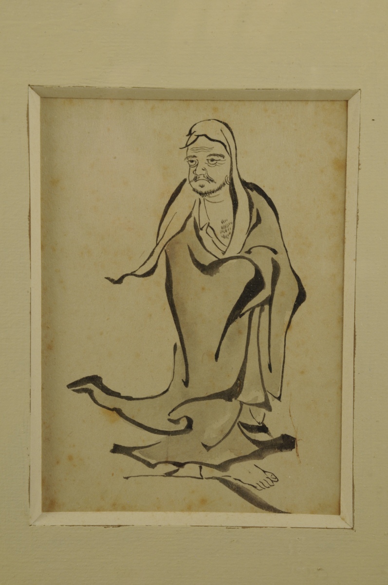 JAPON. Quatre DESSINS à l'encre sur papier, Daruma et Shoki. L'un signé Tomochika.
