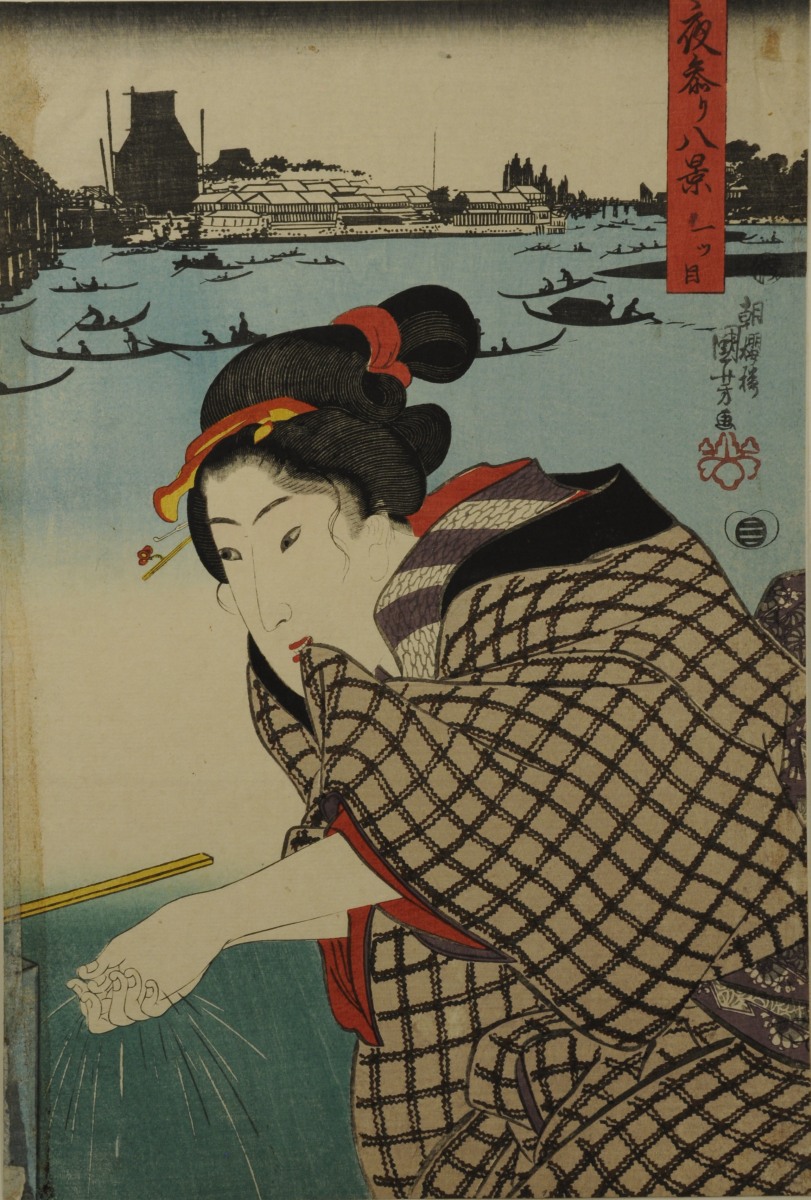 KUNIYOSHI (1797-1861)Femme se lavant les mains. 36 x 24.5 cm.