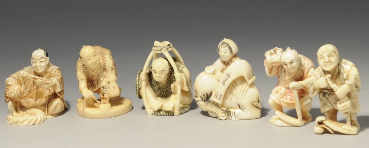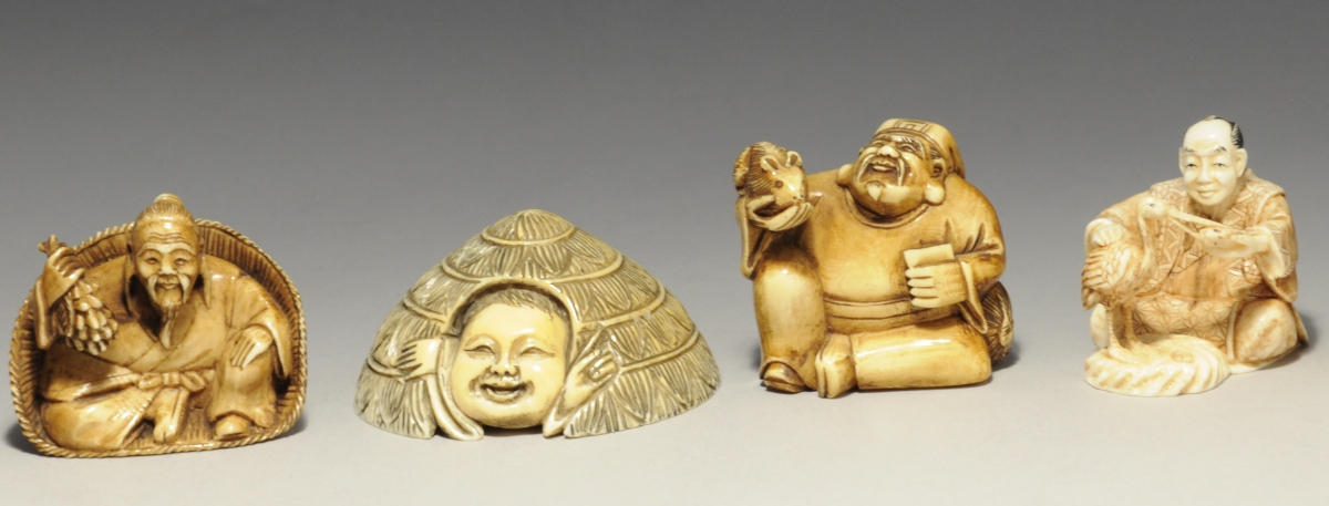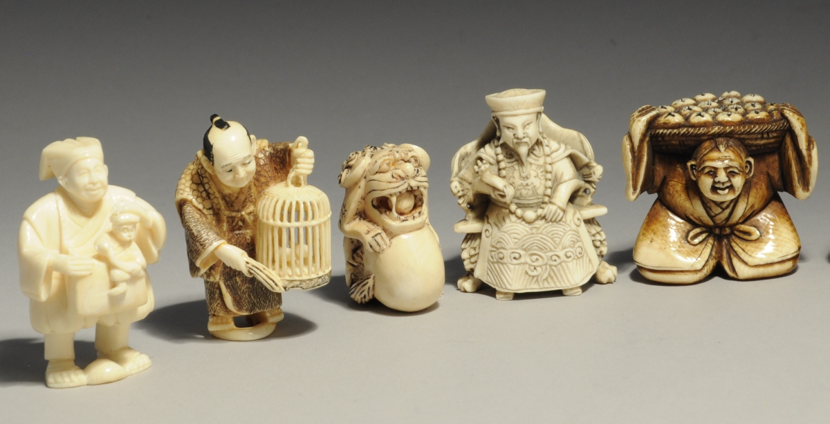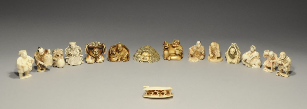 15 NETZUKE en ivoire d'hippopotame sculpté. Certains signés.
