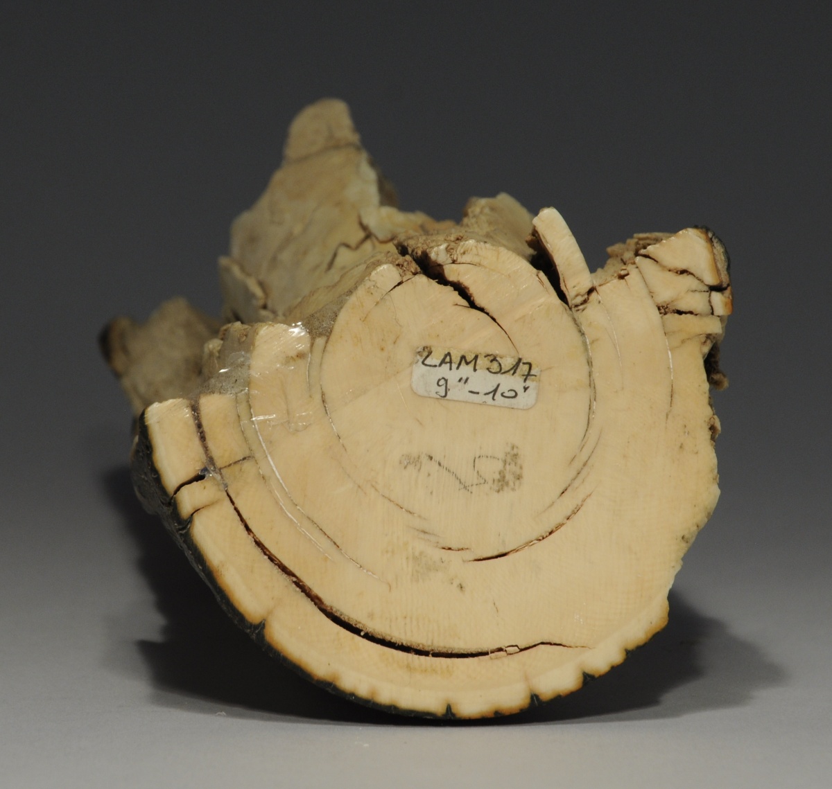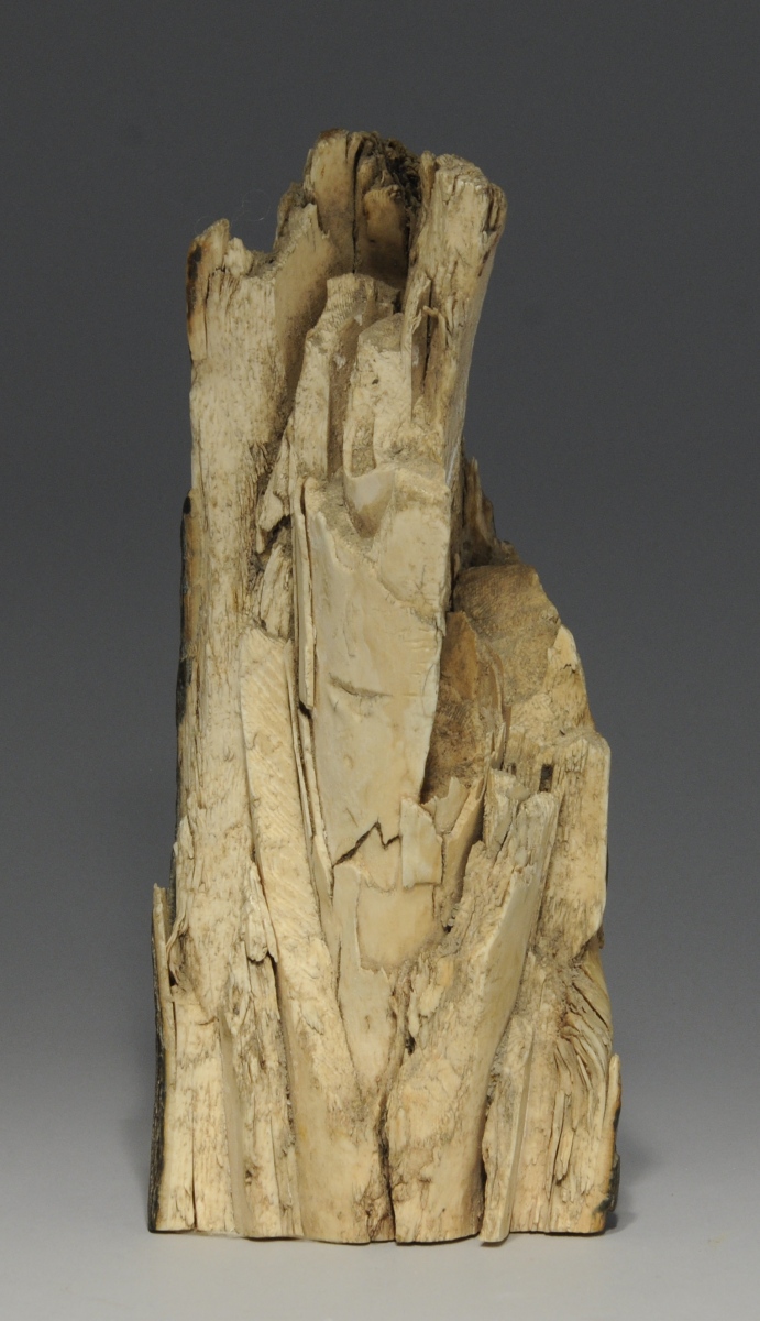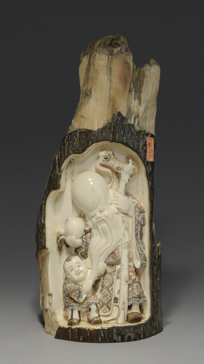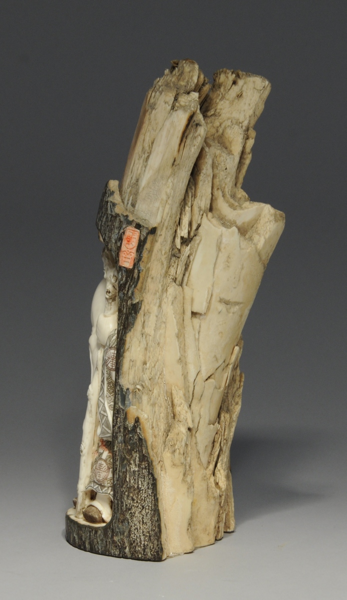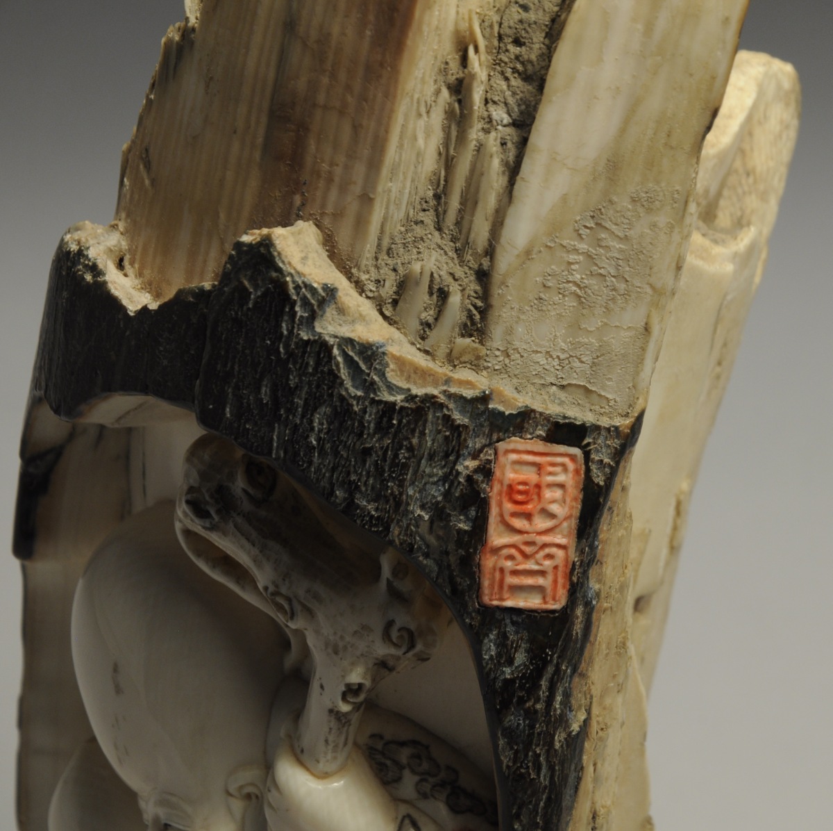 CHINE. DÉFENSE de mammouth sculptée, cachet.