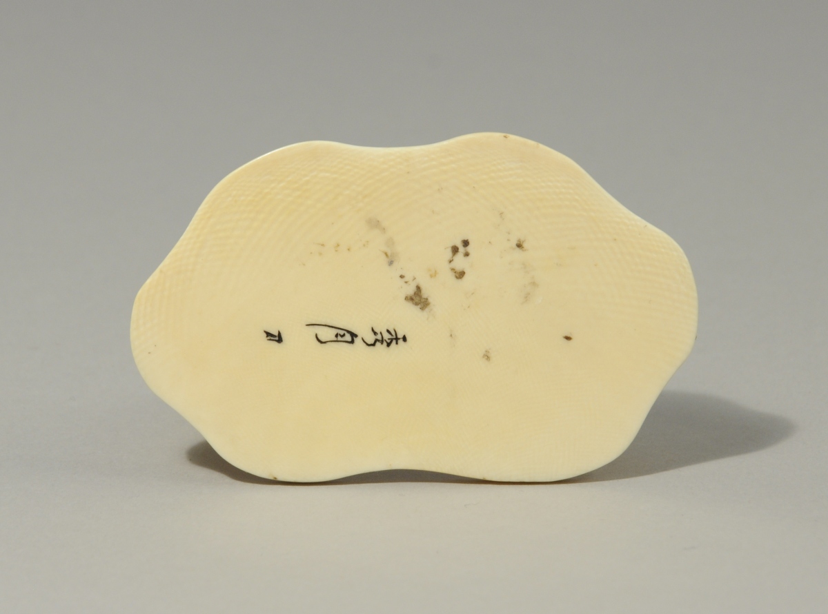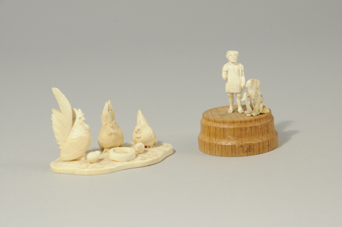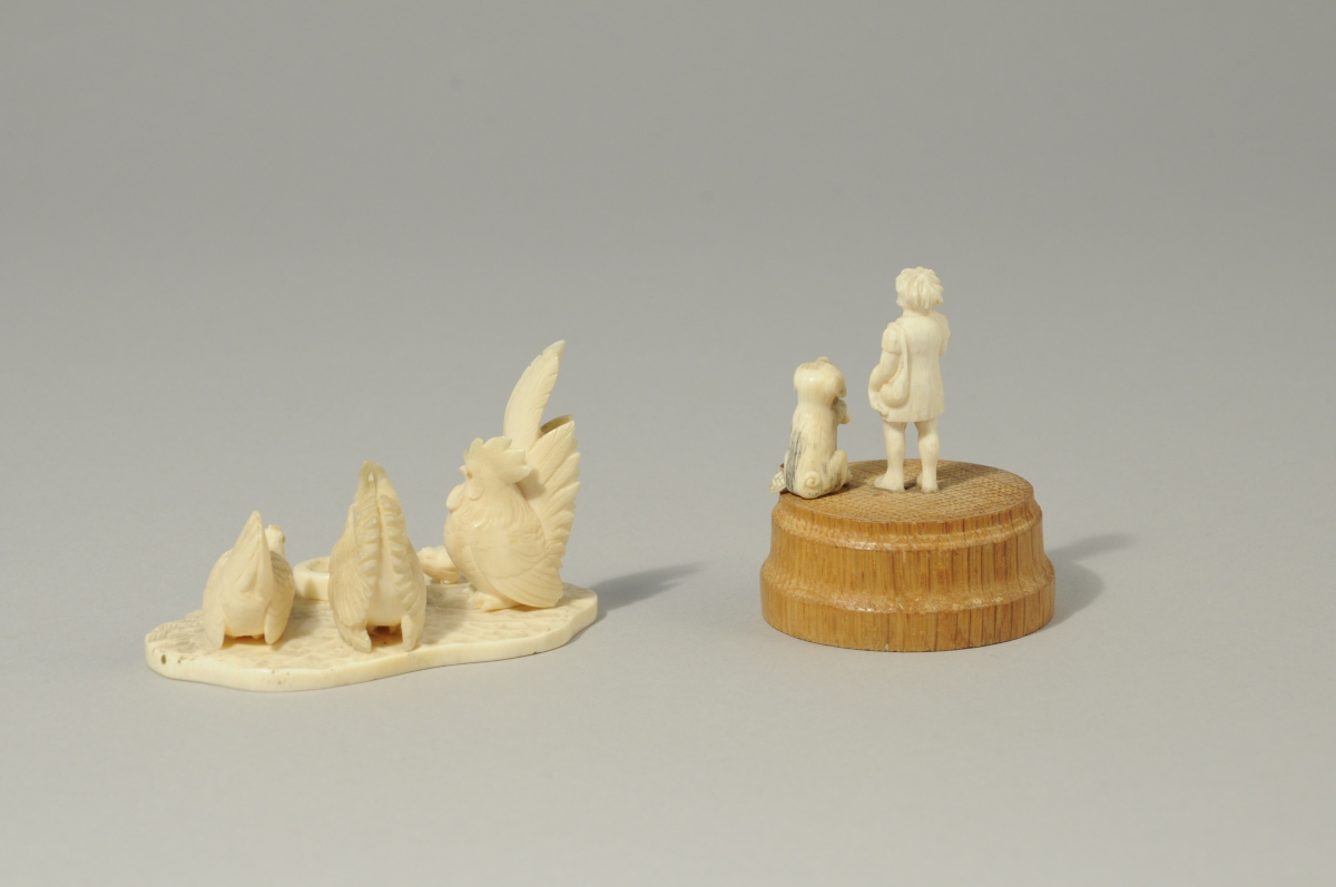 JOINT : Homme et chien en ivoire sculpté. Première moitié du XXe.
