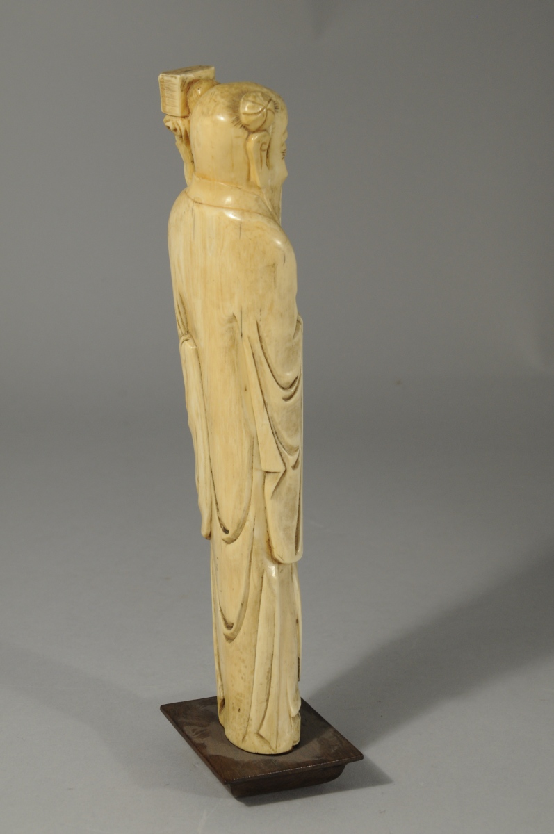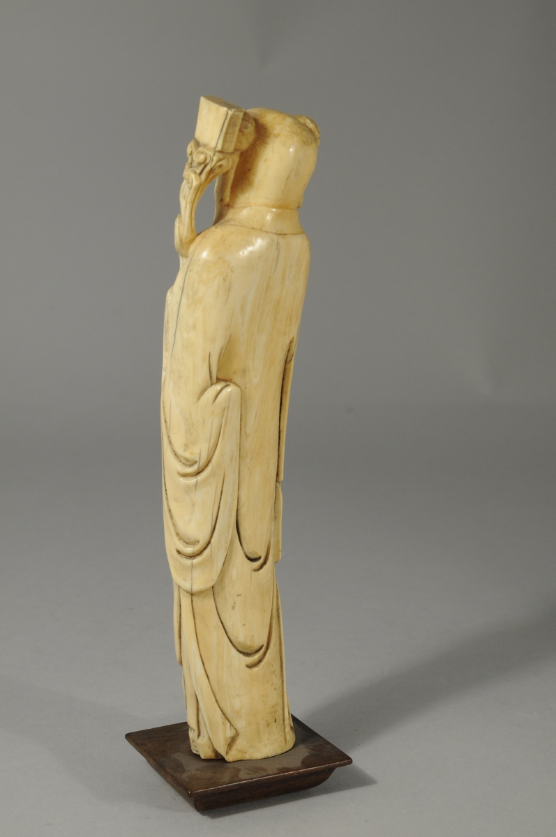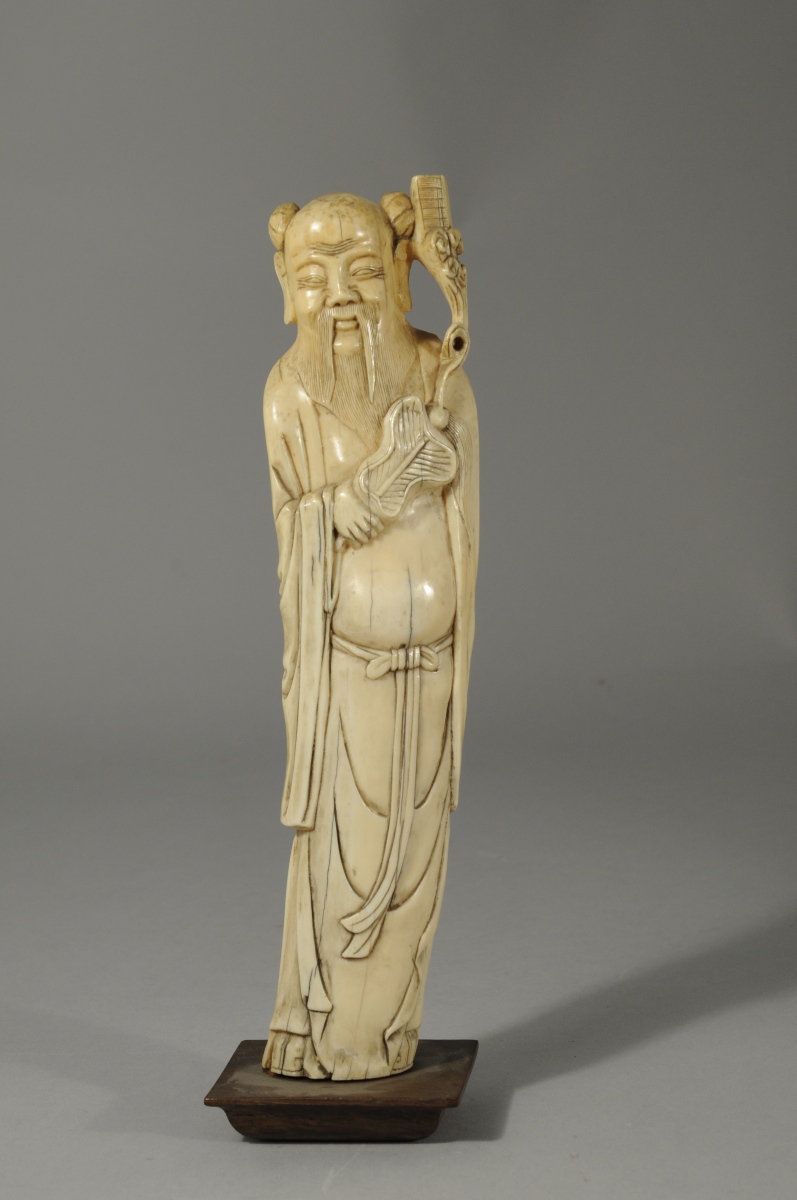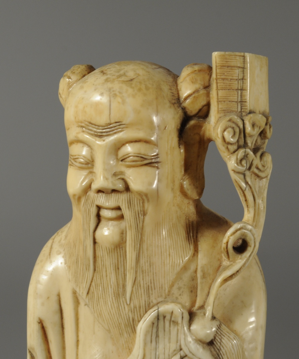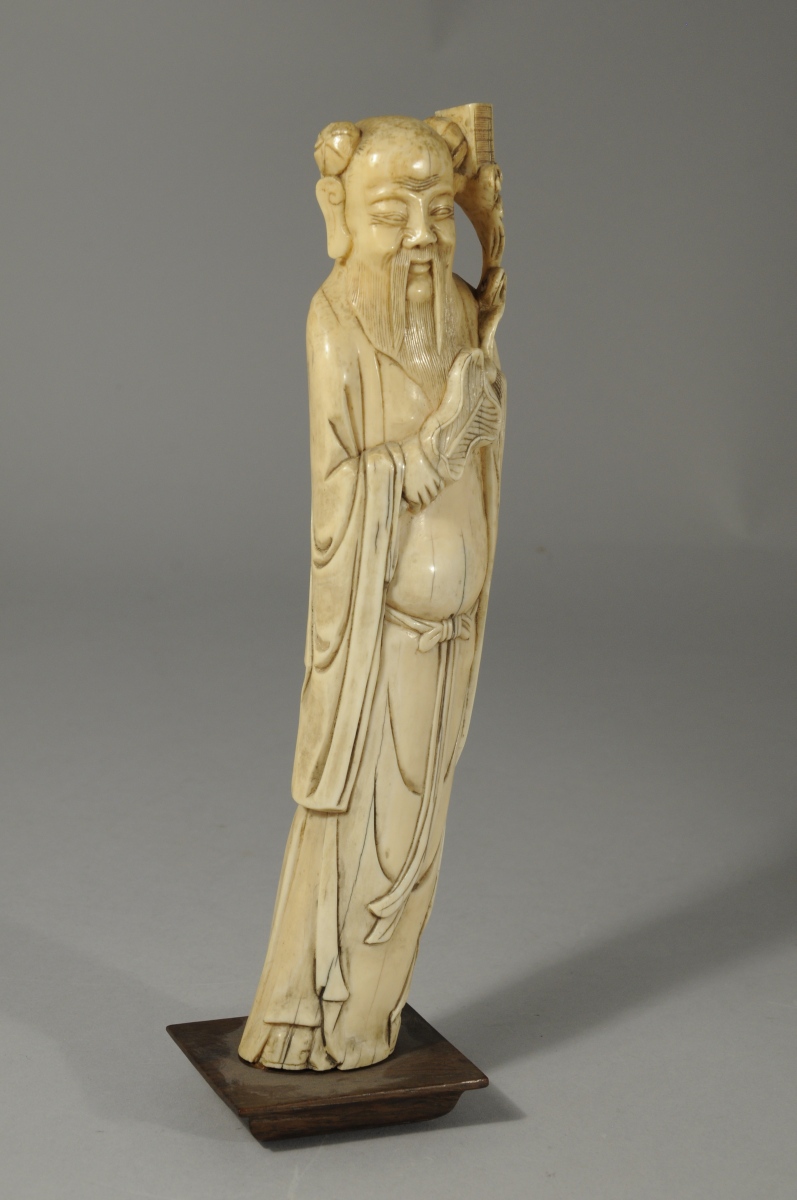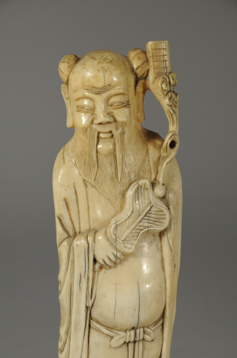 OKIMONO en ivoire sculpté figurant un personnage à la longue barbe.