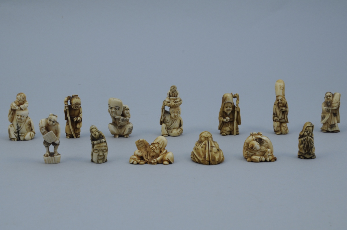 Ensemble de 13 NETSUKE en ivoire. Certains signés.