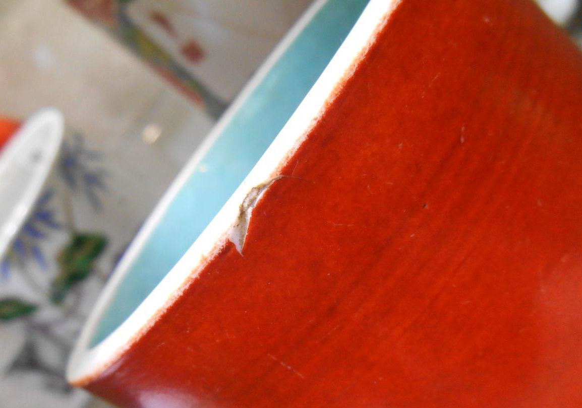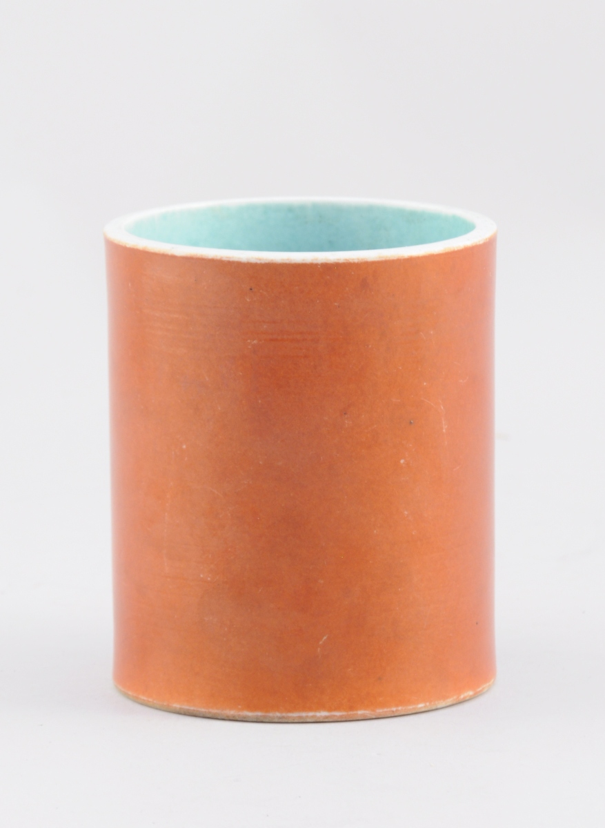 CHINE. POT À PINCEAUX en porcelaine à décor d'émaux sang de buf, l'intérieur céladon.
