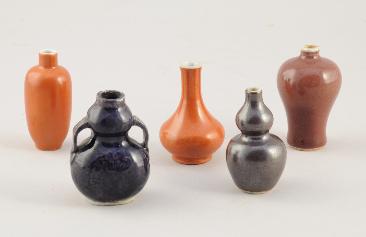 Epoque Kangxi pour le vase miniature violet ( mais abimé), XIXe pour les autres.