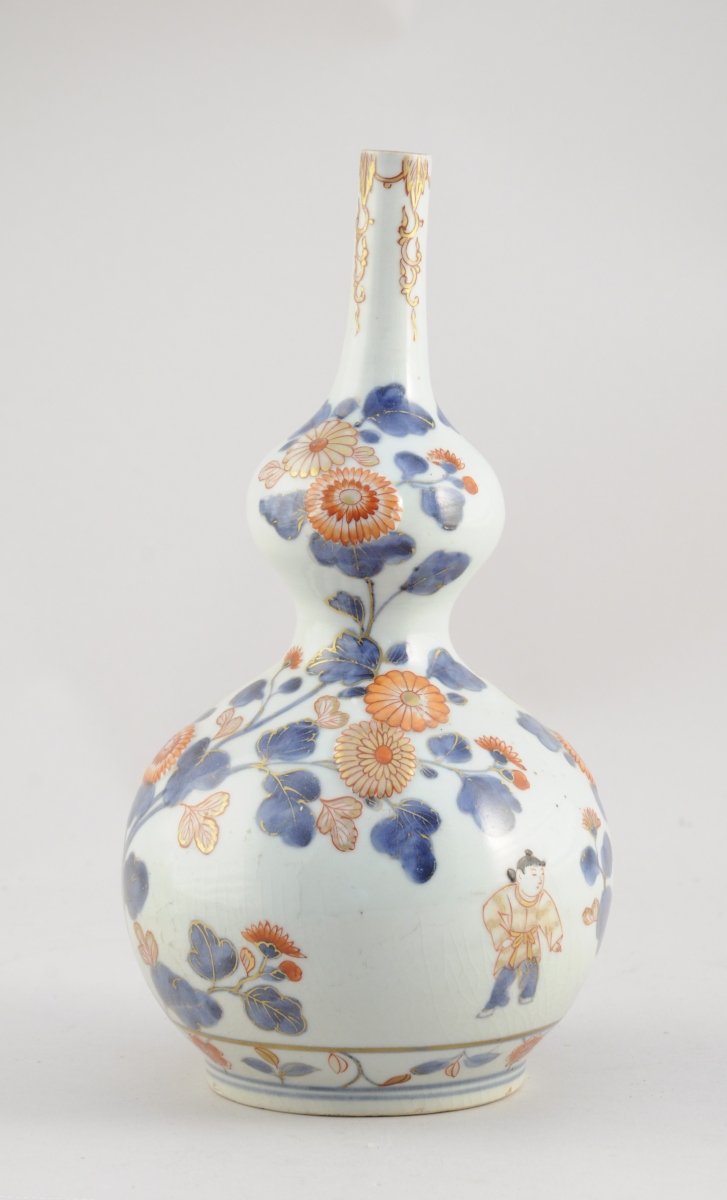 JAPON. VASE en porcelaine à double bulbe et décor Imari.