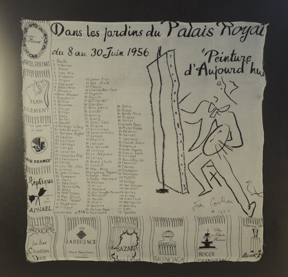 FOULARD PROGRAMME en soie pour le salon des "Peintres d'aujourd'hui" dans les jardins du Palais royal du 8 au 30 juin 1956. Exemplaire n°958.