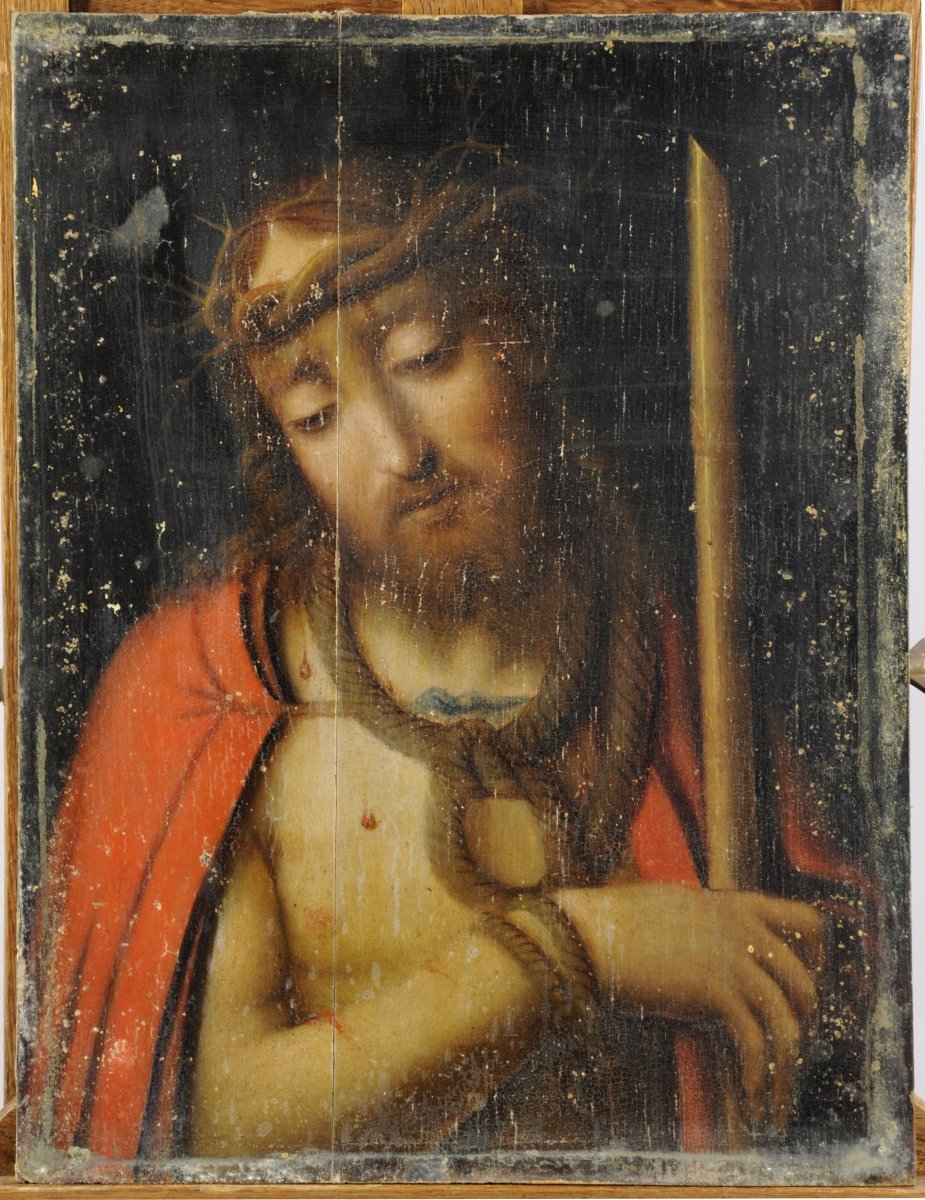 Andrea SOLARIO (1460-1524), d'après.École FRANÇAISE du XVIIème.Le Christ au roseau.Panneau...