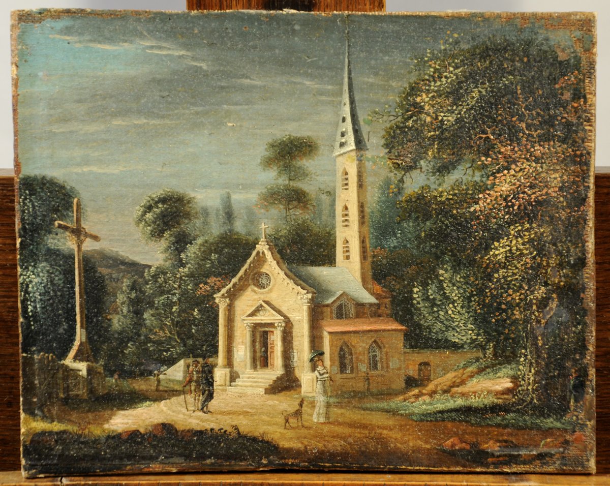 École ANGLAISE du début du XIXeÉlégante près d'une église.toile21 x...