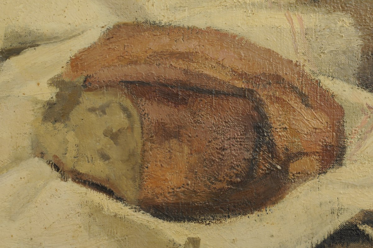 Toile signée en bas à gauche. Une nature morte à la trompe de chasse au verso.
