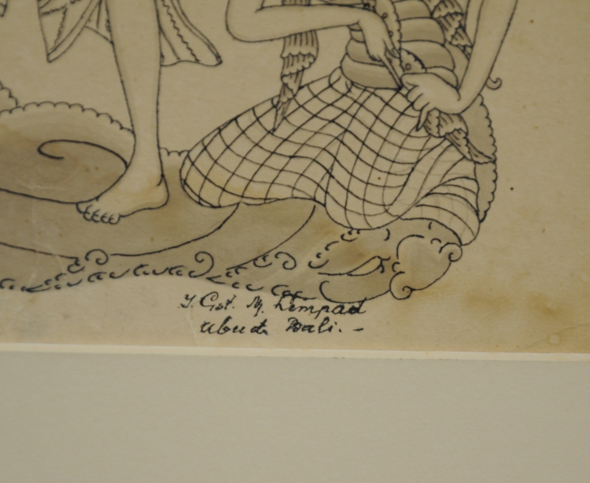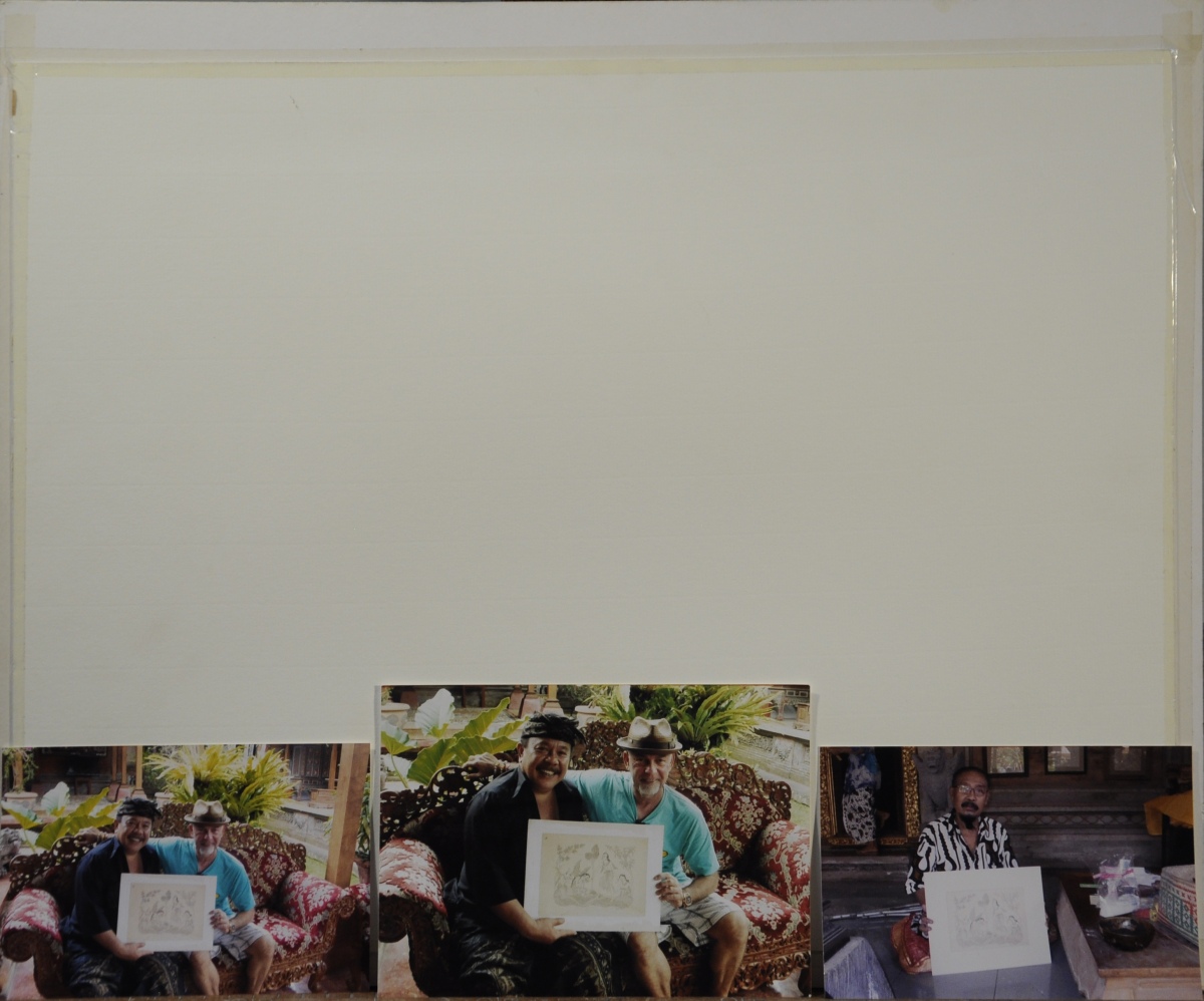 Joint : photo représentant l'oeuvre dans les mains du fils de l'artiste et du roi de Bali avec son collectionneur.