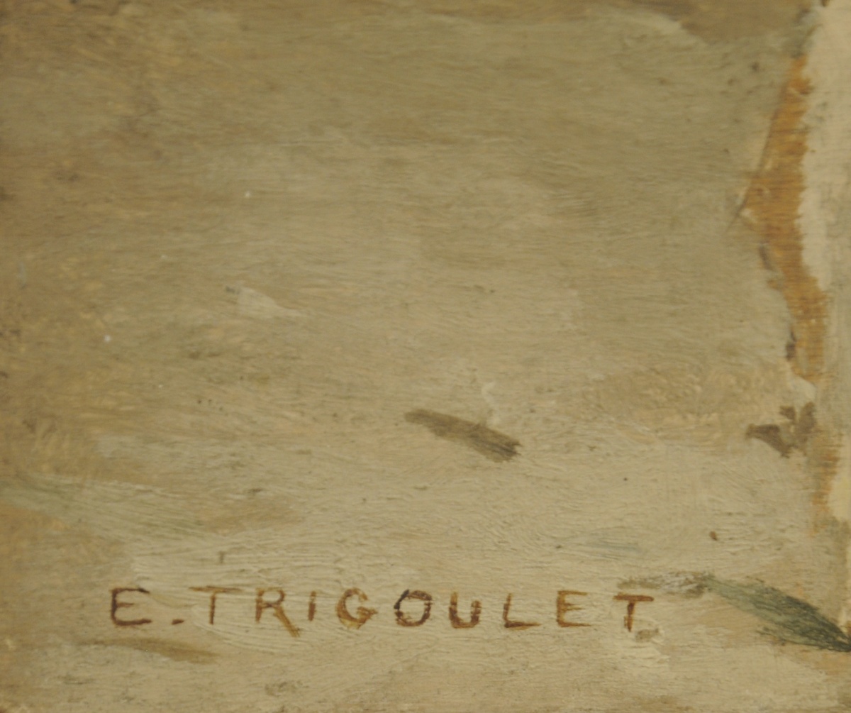 Huile sur panneau de bois, signée en bas à gauche. Tampon de l'Atelier Trigoulet au dos.