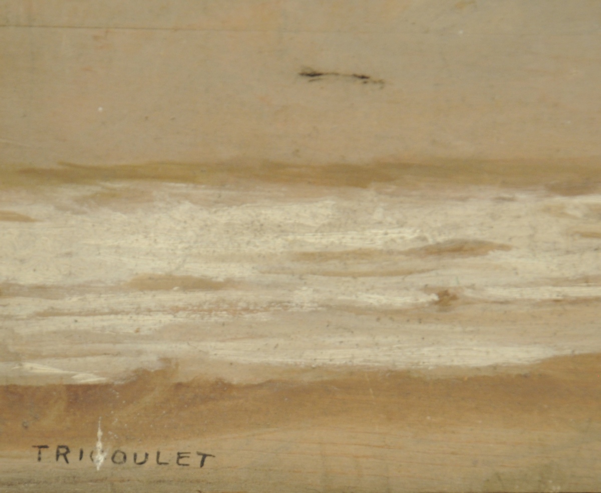 Huile sur panneau de bois, signée en bas à gauche.Tampon de l'Atelier Trigoulet au dos.