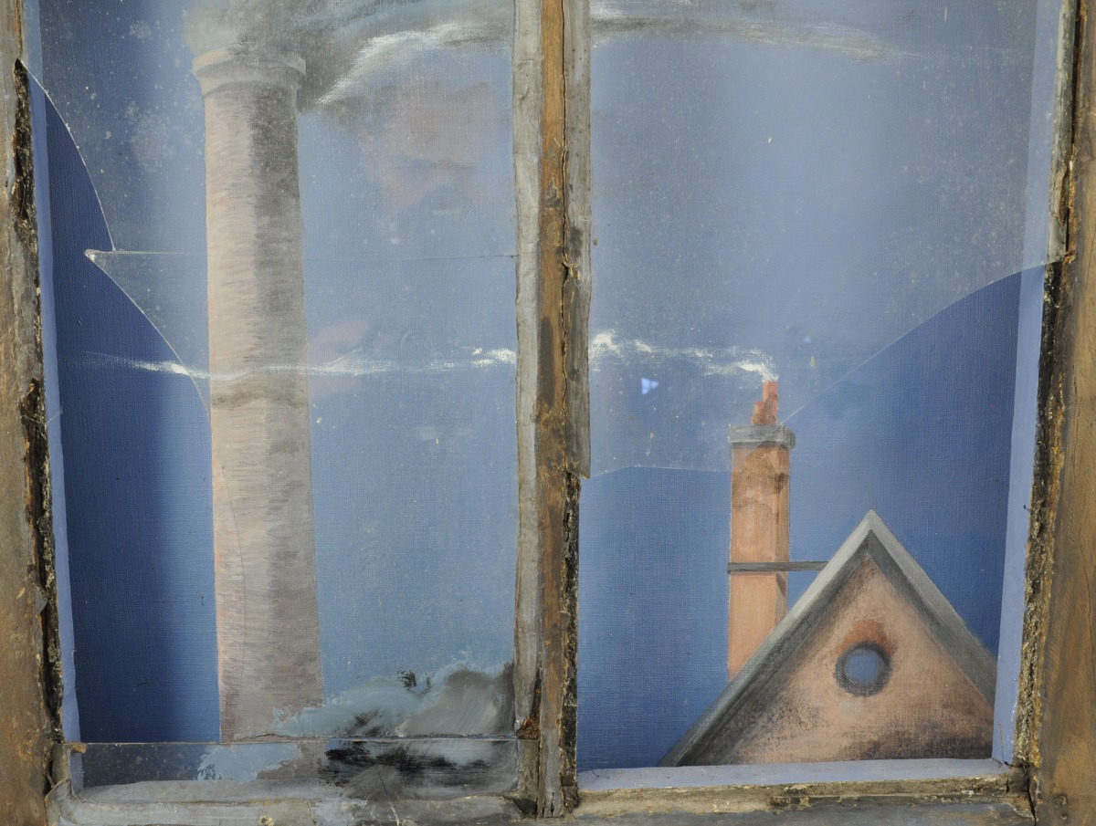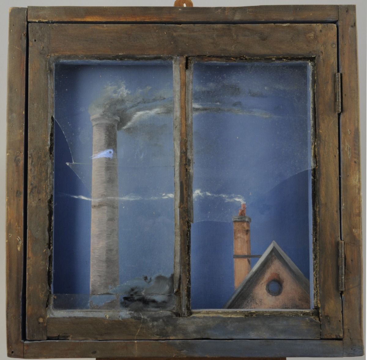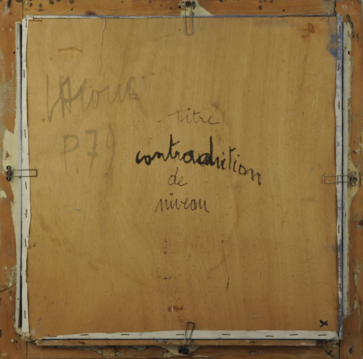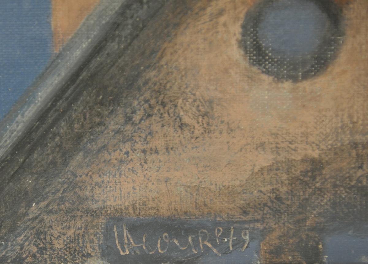 Huile sur toile, bois, verre. Signé au verso et daté : 79