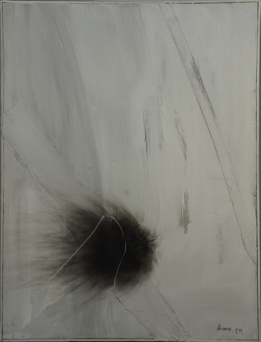 Simone LACOUR (née en 1926)"Précipitation incertaine".Huile sur toile. En bas...