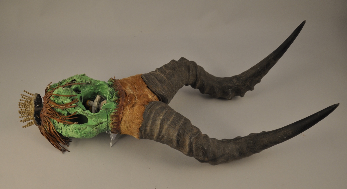 Assemblage, cornes, compositions diverses, cuir. Non signé.