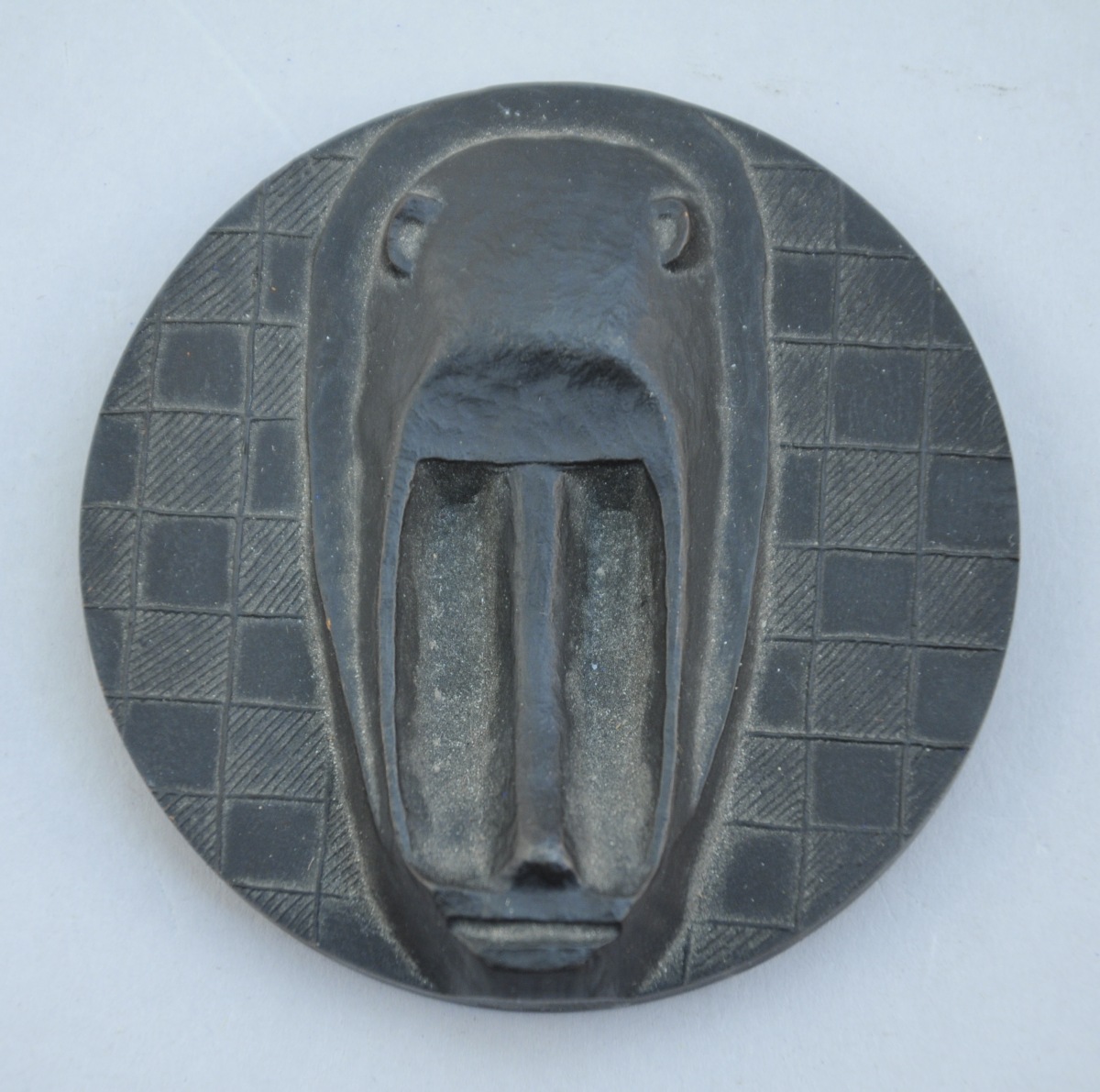 AFRIQUE. MÉDAILLE "DOGON" en cuivre patiné noir. A/ Masque traditionnel se détachant sur un fond quadrillé.
