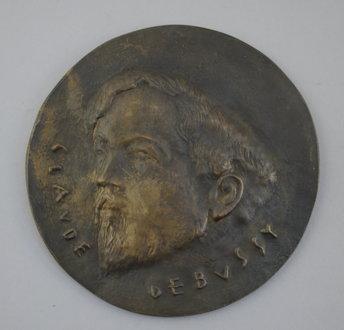 MUSIQUE. MÉDAILLE en bronze à l'effigie de Claude Debussy. Le revers figurant Triton soufflant dans sa conque. Signée Raymond JOLY (graveur général de la Monnaie de Paris de 1958 à 1974). Poinçon de la Monnaie de Paris et "EE / 250".