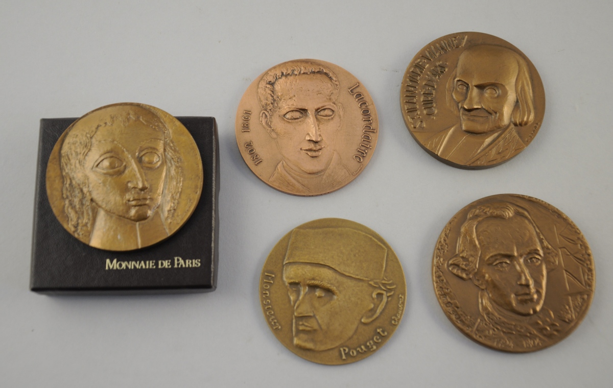 [PHILOSOPHIE ET PENSÉE]. 5 médailles commémoratives : "Kant", par Engeles; "Monsieur Pouget", par Chauvenet; "St Jean Marie Vianney, curé d'Ars", par Emmel; "Pascal", par Chauvenet; et "Lacordaire", par Chauvenet.