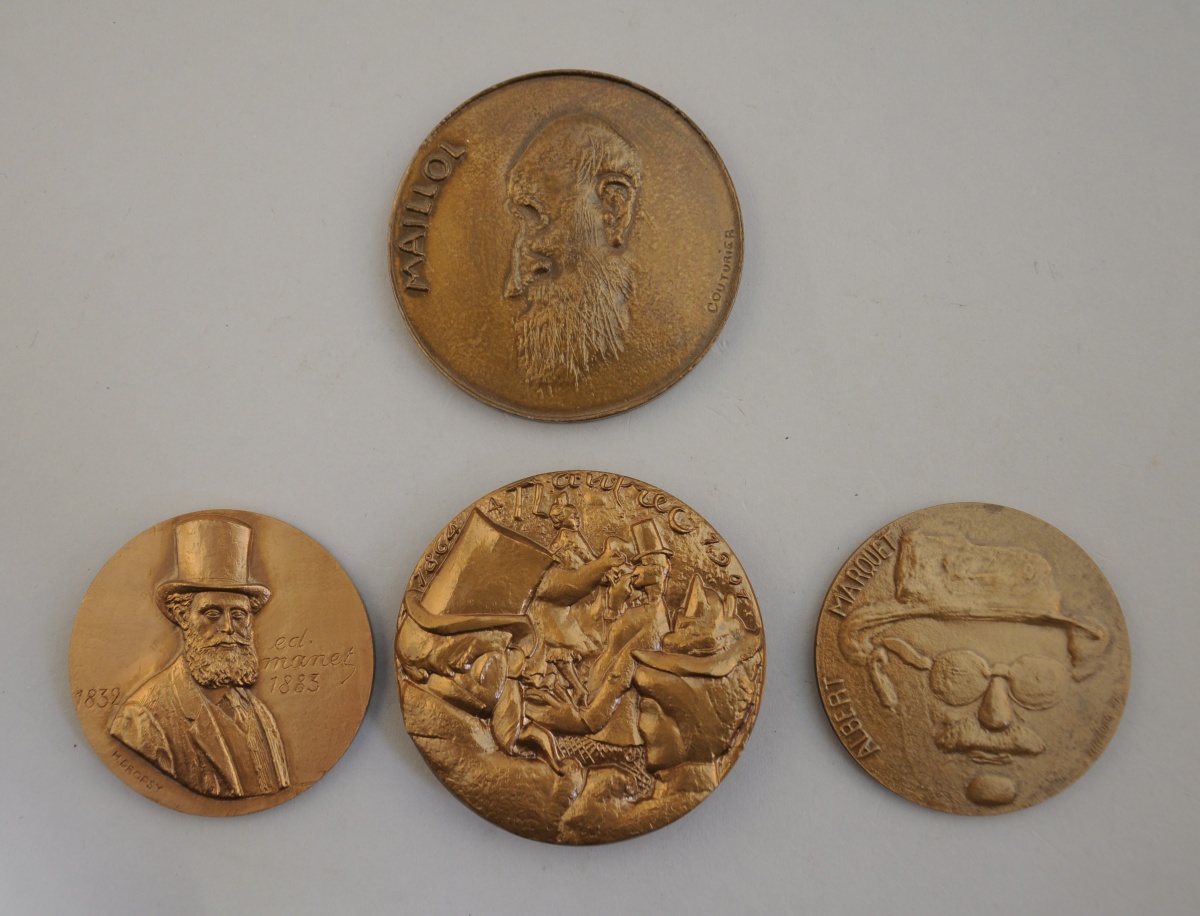 [ARTISTES]. 4 médailles commémoratives : "HT Lautrec", par Galtié; ""Ed. Manet", par Dropsy; "Maillol", par Couturier; et "Albert Marquet", par Auriscote.