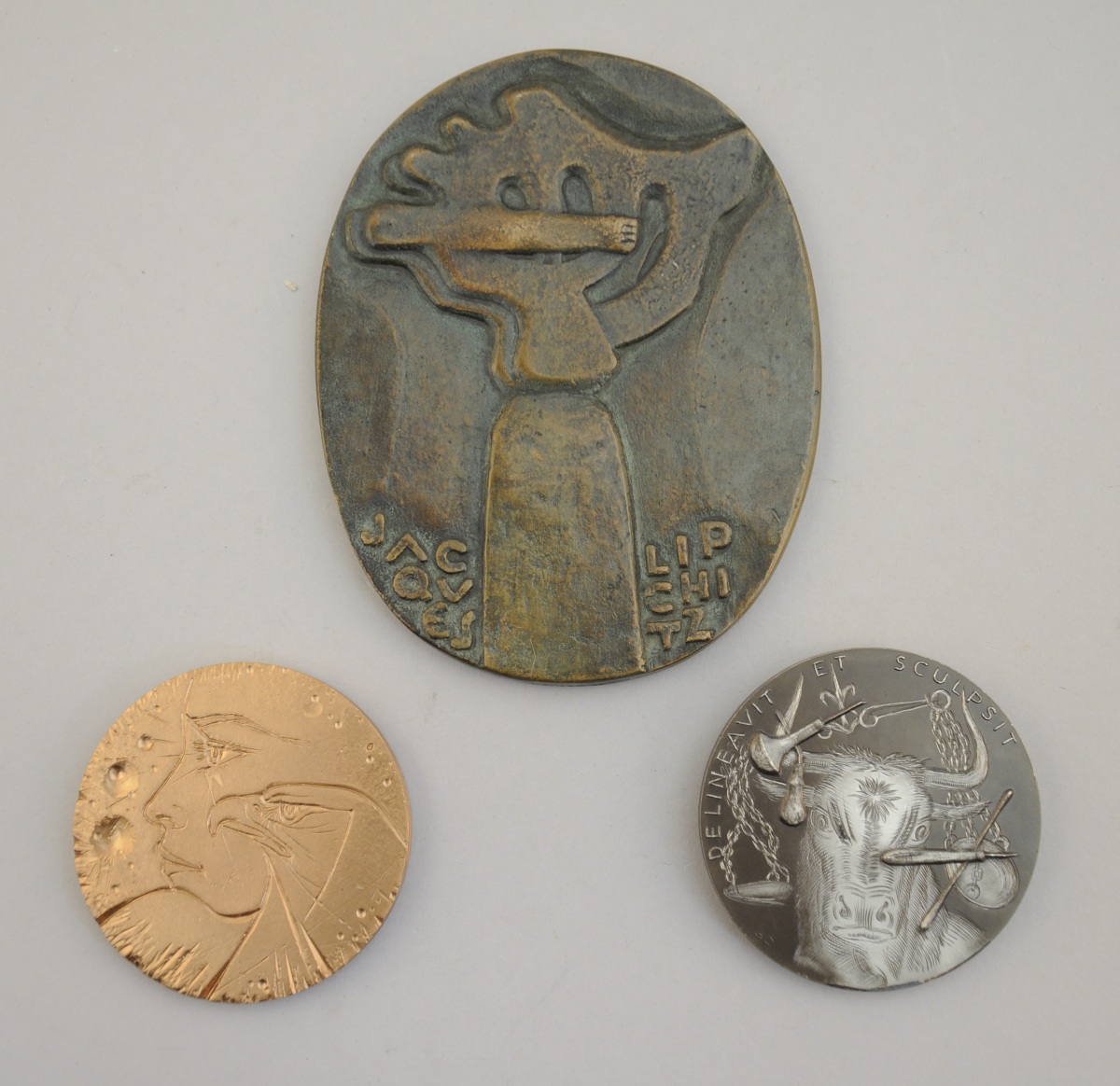 [ARTISTES DU XXe]. 3 médailles commémoratives : "Albert Decaris", par Delamarre; "Pierre-Yves Trémois", par Birr; et "Jacques Lipchitz", marquée au monogramme.