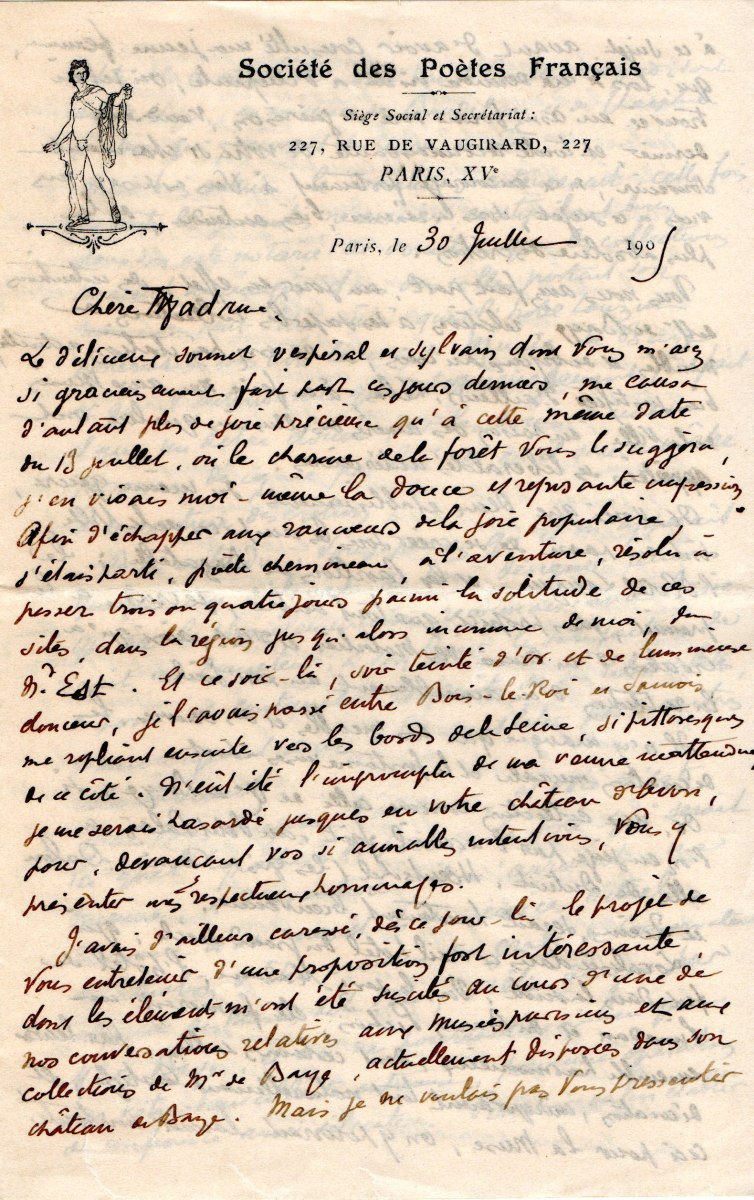2 L.A.S. Jean BACH-SISLEY ; L.A.S. Henry BAUER fils naturel d'Alexandre DUMAS ; L.A.S. Adolphe Van BEVER ; 2 L.A.S. et B.A.S. Alcanter de BRAHM ; 2 L.A.S. Hippolyte BUFFENOIR ; L.A.S. avec un poème Charles de BUSSY ; L.A.S. Henri CAZALIS ; L.A.S. Jacques CHARDONNE ou BOUTELLEAU ; 3 L.A.S. Léo CLARETIE ; 3 L.A.S. avec un poème André DELACOUR ; 2 L.A.S. et 2 B.A.S. Léonce DEPONT ; L.A.S. Léon DIERX ; 3 L.A.S. Auguste DORCHAIN et son épouse ; L.A.S. Armand GAULEY ; L.A.S. Paul HAREL ; L.A.S. IMBERT de SAINT AMAND ; L.A.S. et 2 B.A.S. Léonce de JONCIÈRES ; L.A.S. Louis Joseph LABAT ; L.A.S. Antoine de LEVIS-MIREPOIX ; L.A.S. avec poème Pol LOEWENGARD ; 5 L.A.S. Henri MALTESTE ; 2 L.A.S. MAXIME-LÉRY ; 8 L.A.S. avec un poème Paul MUSURUS ; L.A.S. Pierre de NOLHAC ; 5 L.A.S. Eugène PASCAU peintre ; 2 L.A.S. Lucien PATÉ ; L.A.S. Charles de POMAIROLS ; L.A.S. Gaston de RAIMES ; 3 L.A.S. avec un poème Ernest RAYNAUD ; L.A.S. Jean RENOUARD ; L.A.S. Antoine ROUS marquis de la MAZELIÈRE ; 5 L.A.S. Robert VALLIER ; L.A.S. Robert de LA VILLEHERVÉ ; 4 L.A.S. Gérard WALCH auteur de l'Anthologie des poètes français ; 5 L.A.S. Léon XANROF.