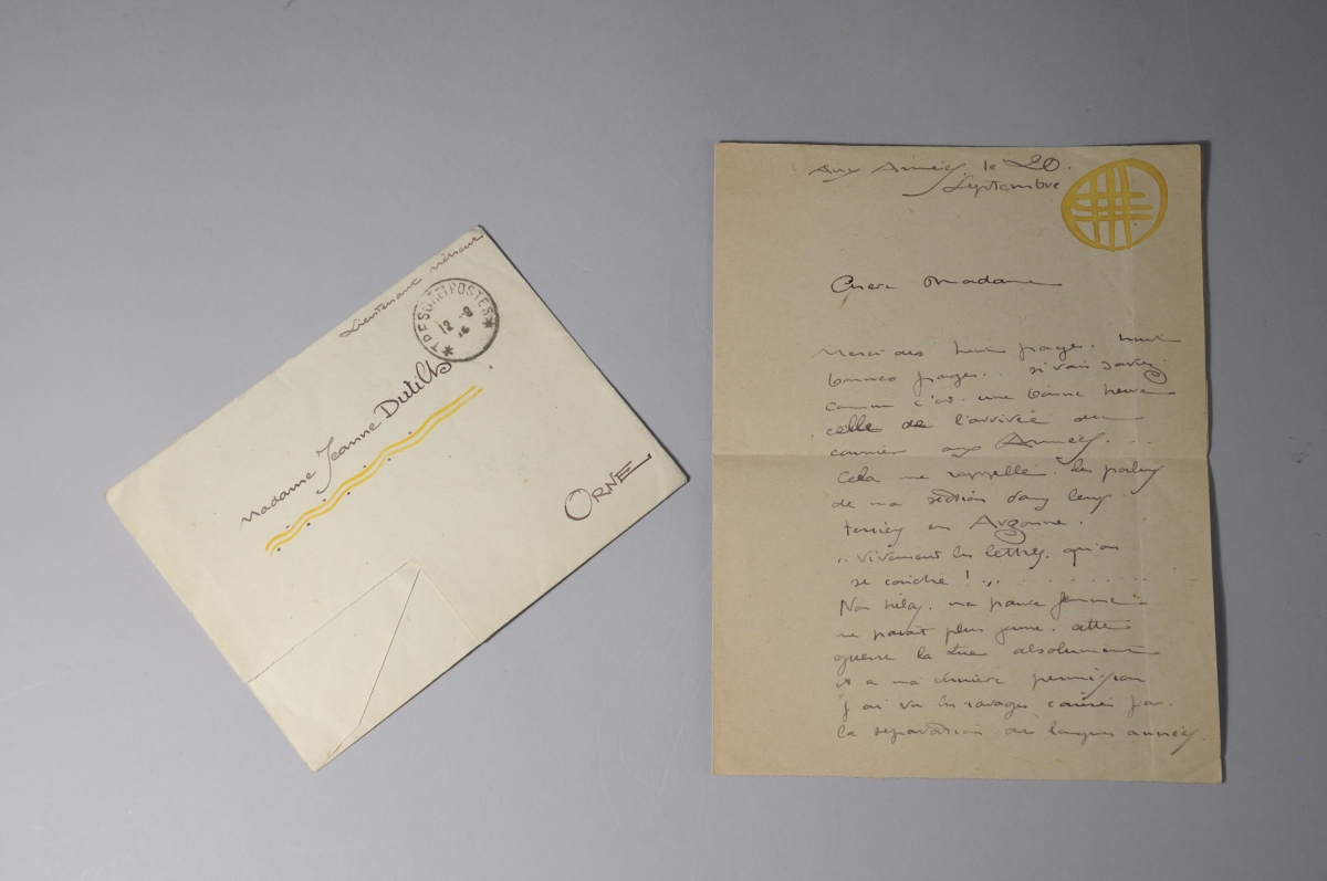 L.A.S., monogrammée, aux armées, 20 septembre 1918, à Madame Jeanne Dutilh, 4 pages, 21 x 31 cm, une enveloppe.