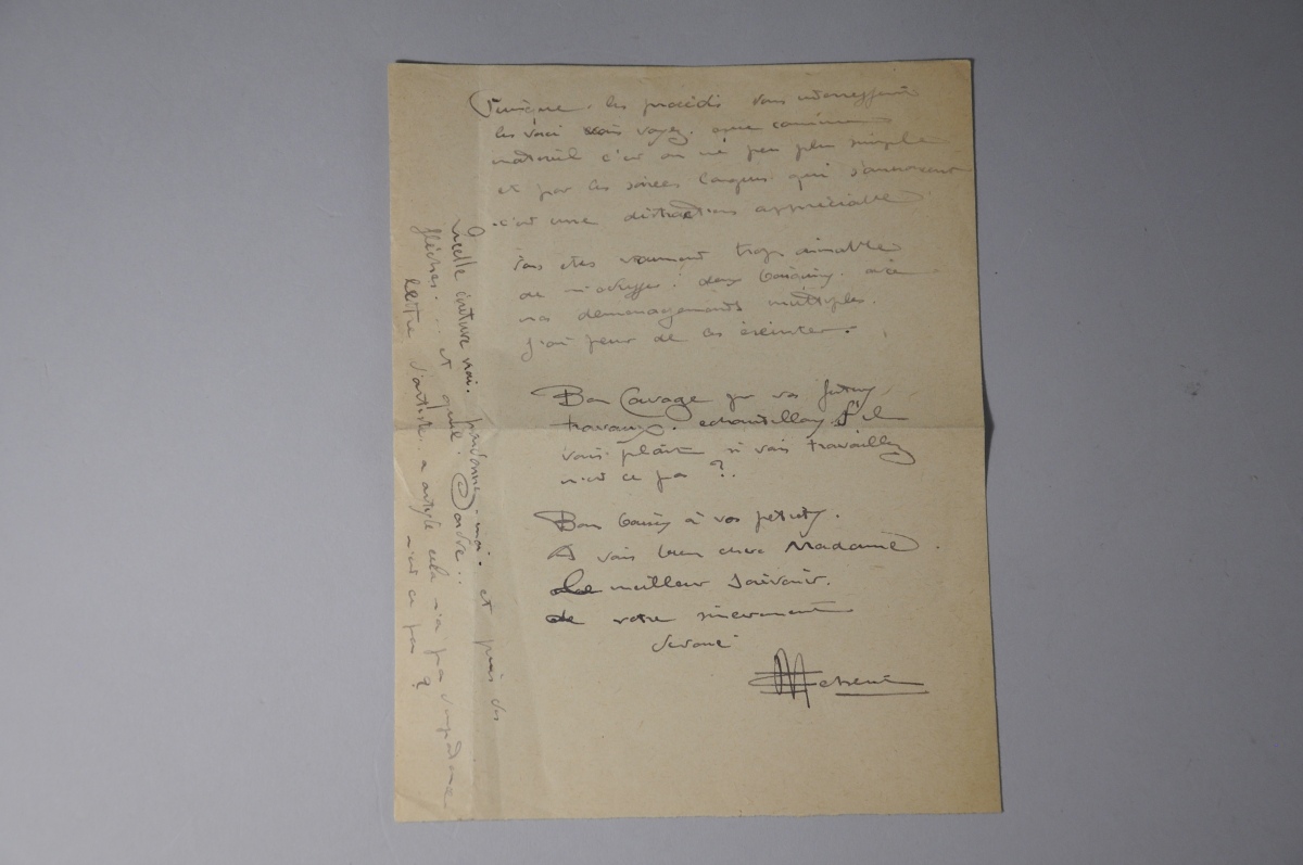 Correspondance aux armées pour donner des nouvelles de sa femme et sa fille : "Tout cela fait beaucoup de mal chez nous. Mais je ne désespère pas de remonter ma maison ; la main est bonne, l'il aussi quand la fatigue des nuits de de veilles seront dissipées. Je me remettrai courageusement au travail, et la vie renaitra chez nous. Je ne crains que la maladie. "