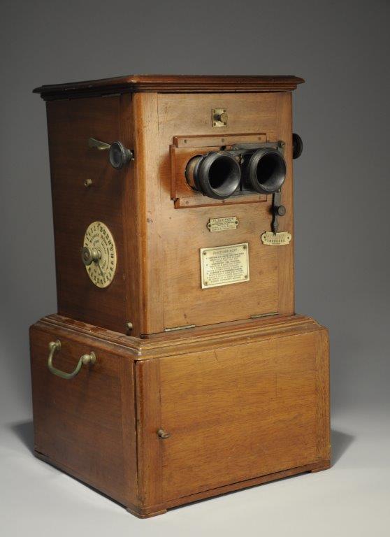 Borne visionneuse stéréo en acajou pour vues 45 x 107.