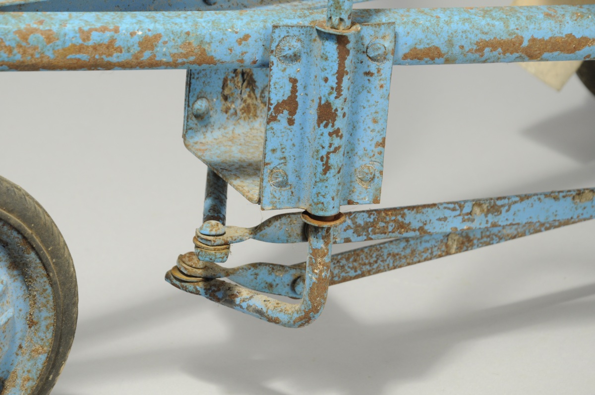 CYCLO-RAMEUR, "Baby Rameur" en métal laqué bleu. Poignées en bois laqué bleu.