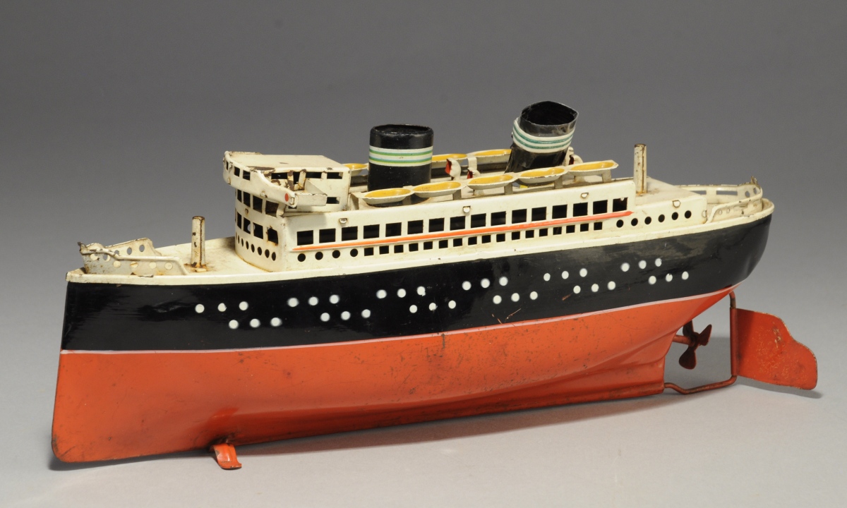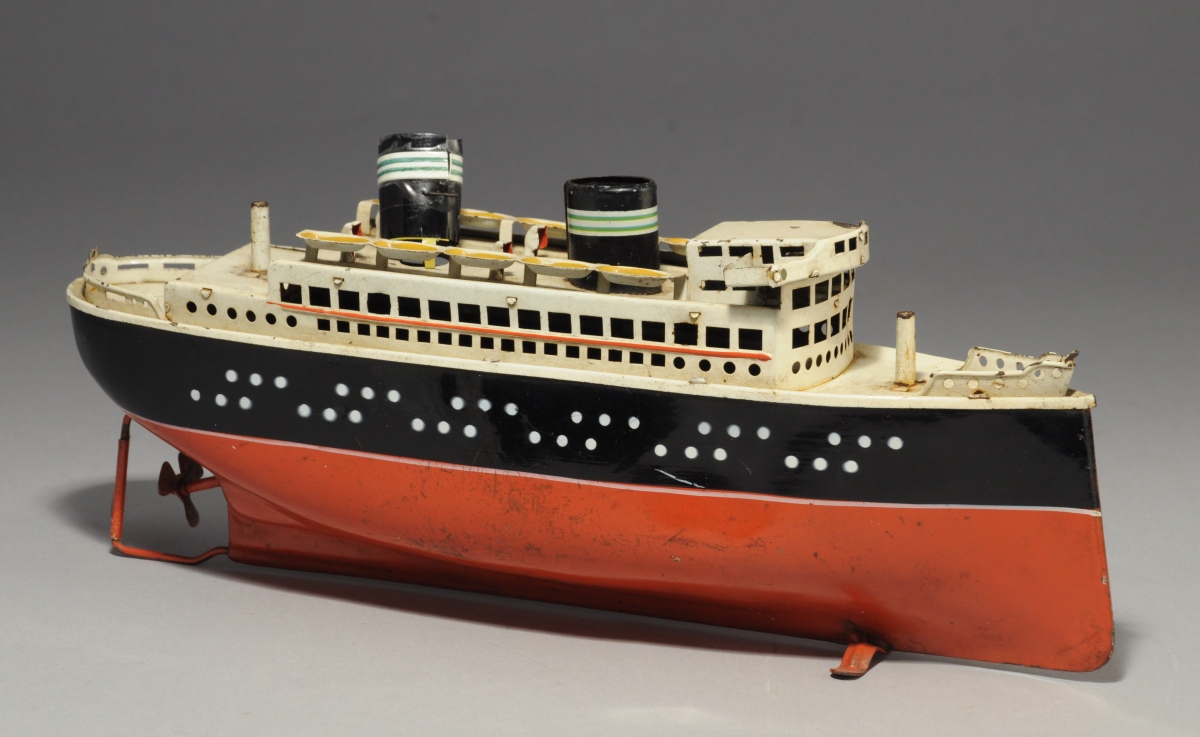 ARNOLD. PAQUEBOT en tôle polychrome à remontage mécanique. Deux cheminées.