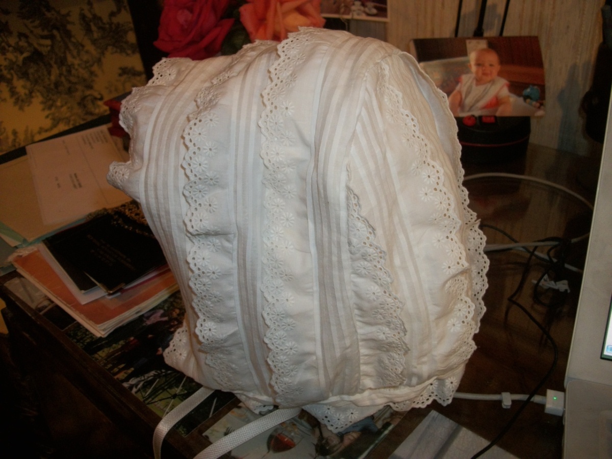 COIFFE NORMANDE, XIXème siècle, linon à volants de broderies anglaises.