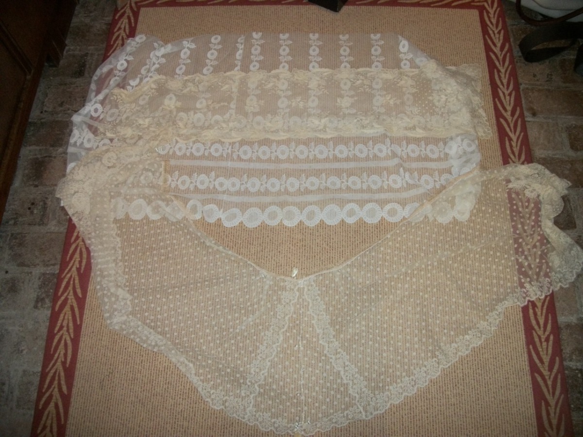 Deux grands VOLANTS de dentelle (fragmentaire) et un fichu en dentelle.
