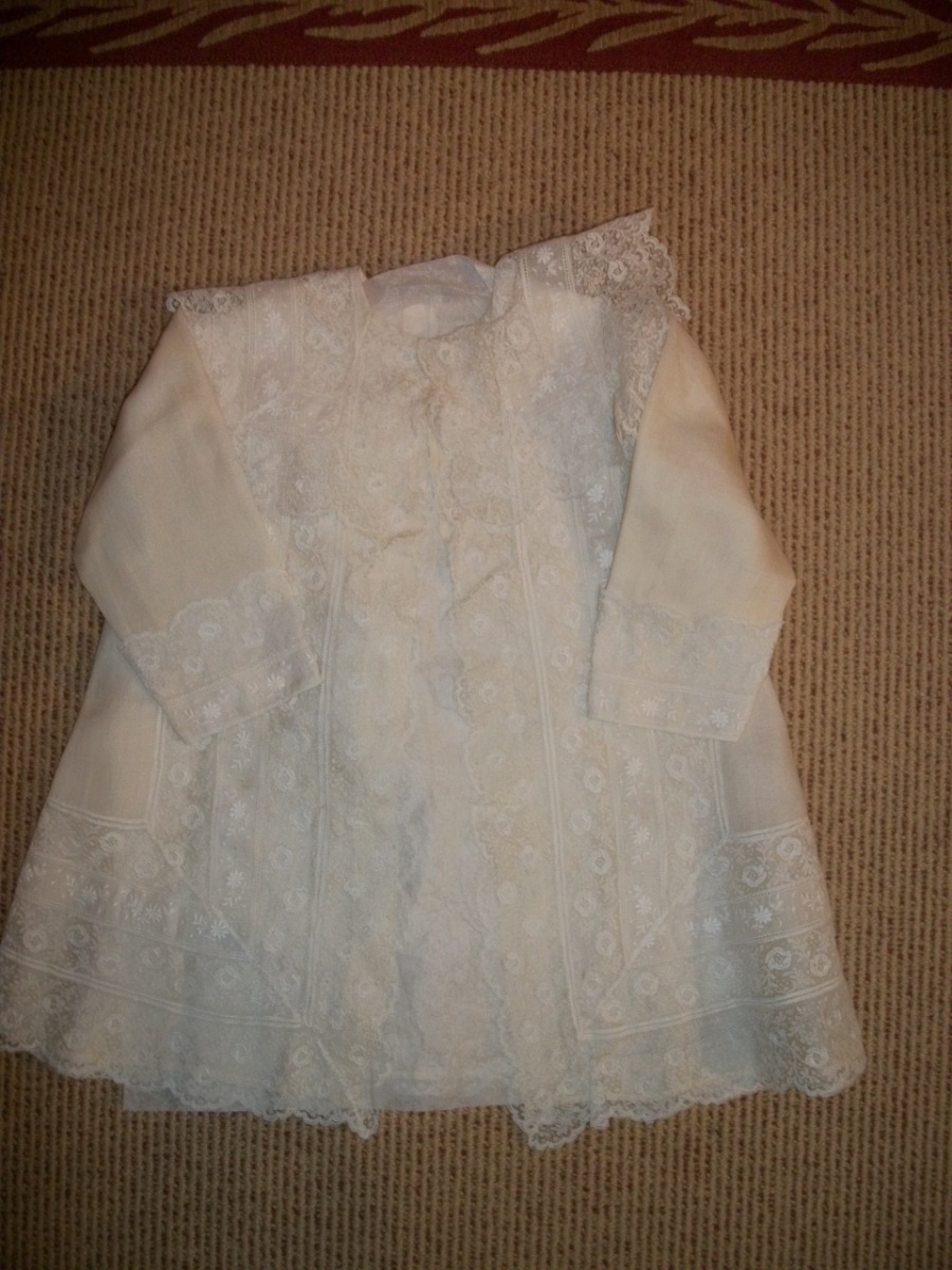 MANTEAU de BAPTÊME avec incrustation de dentelle.