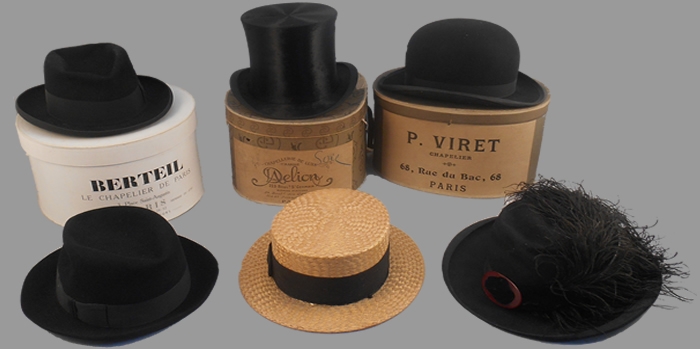 Réunion de CHAPEAUX : tube, melon, feutre, canotier et divers.