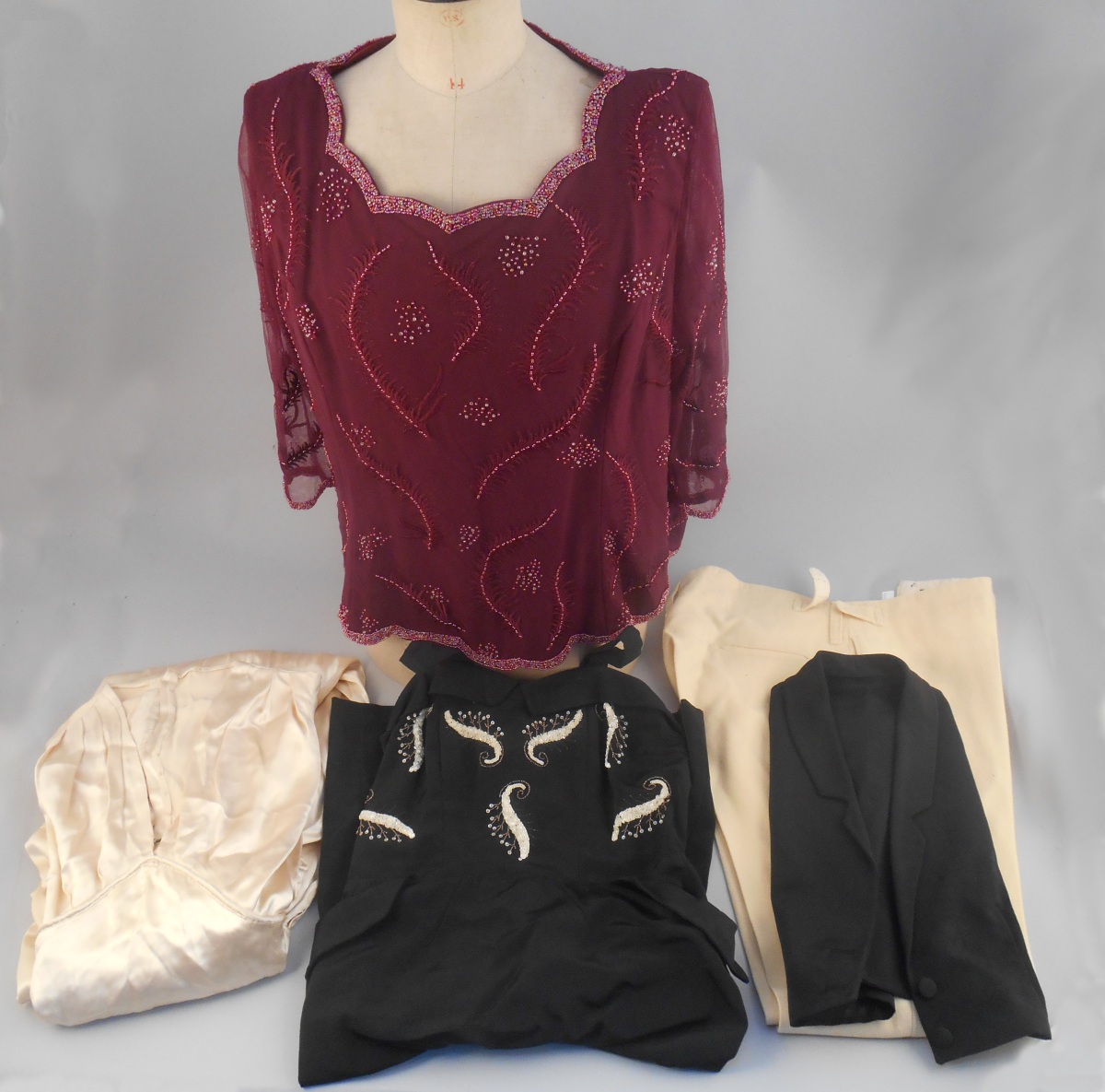 Réunion de DEUX ROBES, un corsage, pantalon en drap de...