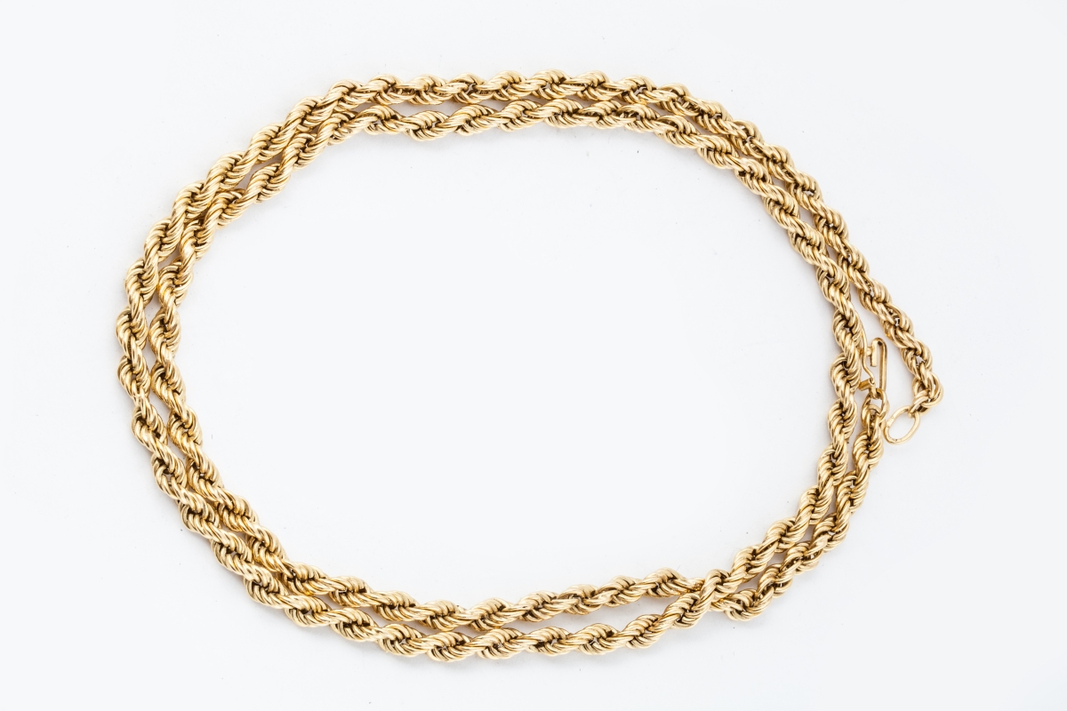 COLLIER en or jaune 18K (750 millièmes) torsadé, en chute.