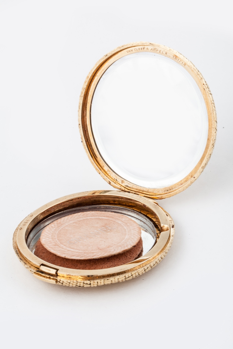 VAN CLEEF AND ARPELS. POUDRIER en or jaune de forme circulaire à motif de vannerie. Signé et numéro 101714.