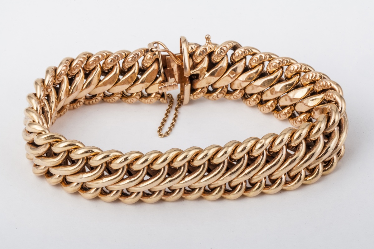 BRACELET en or jaune creux à larges mailles américaines.Long. 20...