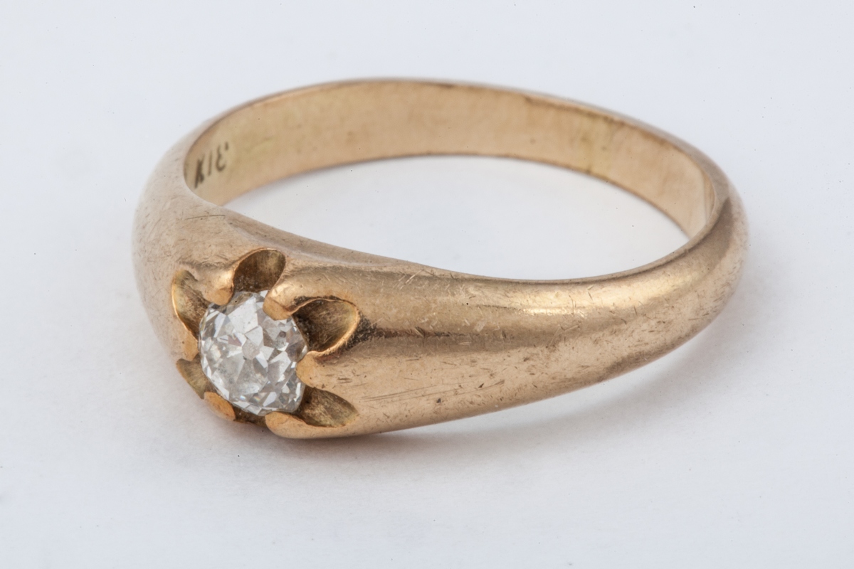 SOLITAIRE en or jaune orné d'un diamant de taille ancienne d'environ 0,2 carats.