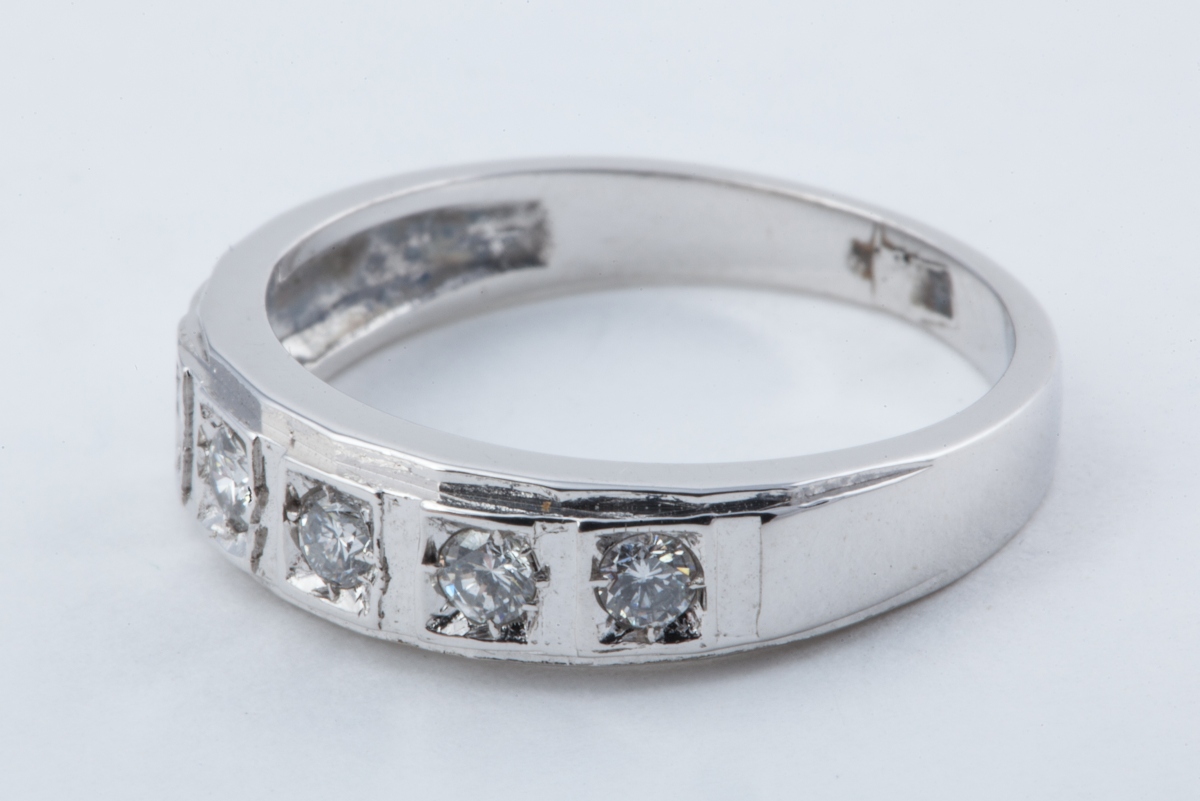 BAGUE en or gris, sertie d'une ligne de cinq petits diamants.