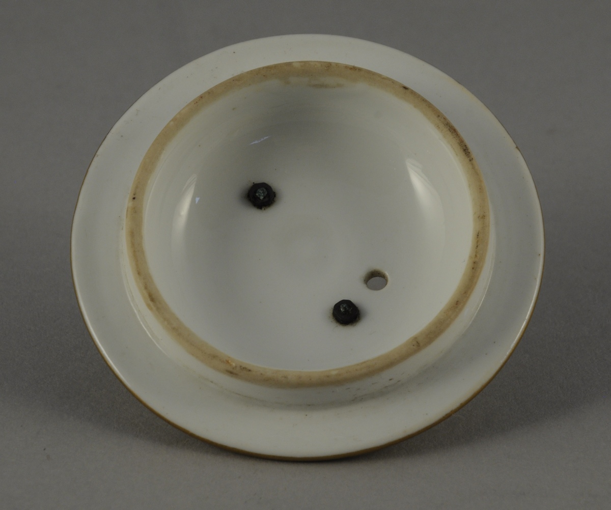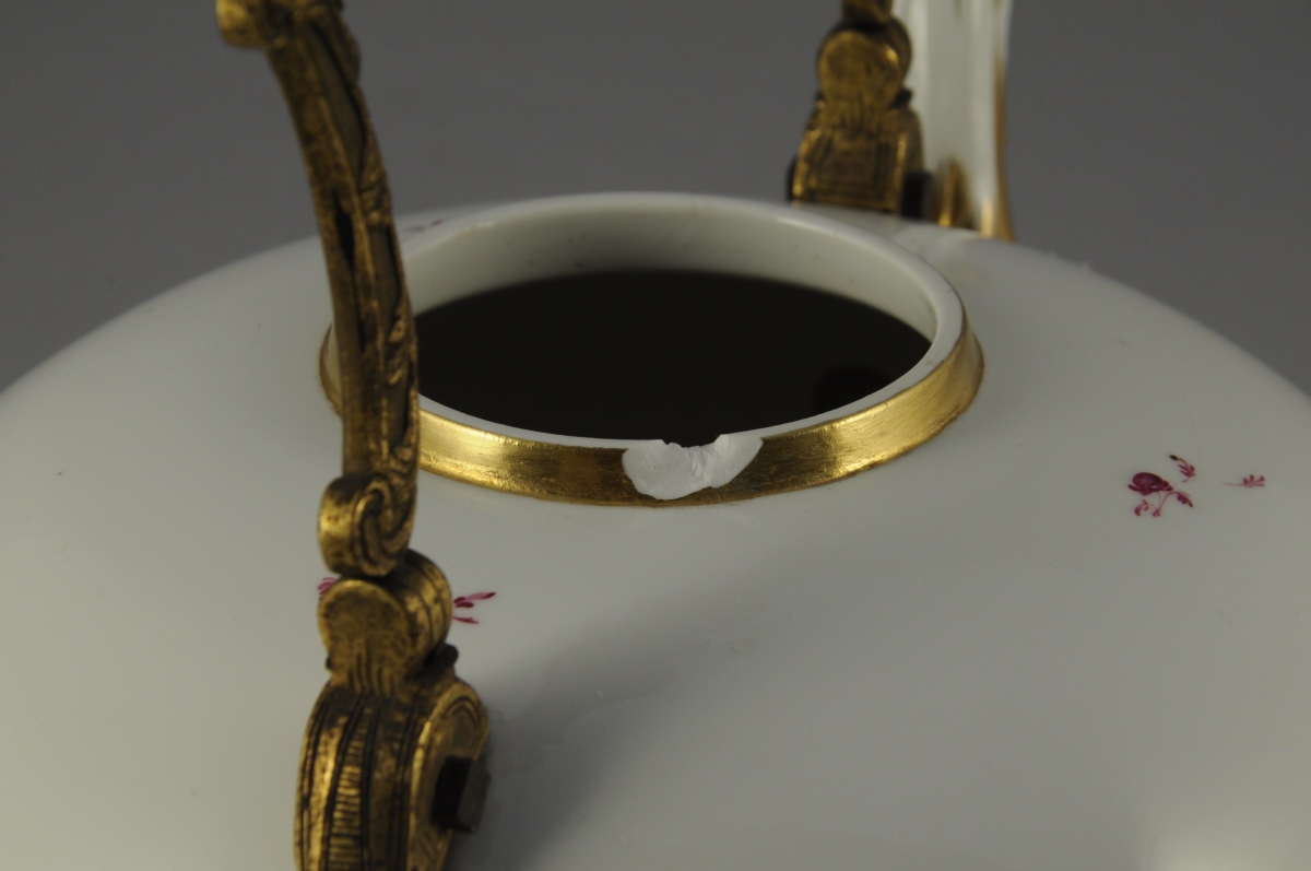 Haut. 15, Diam. 17 cm. (éclat au col, manques à la prise et reprise en bronze doré postérieure)