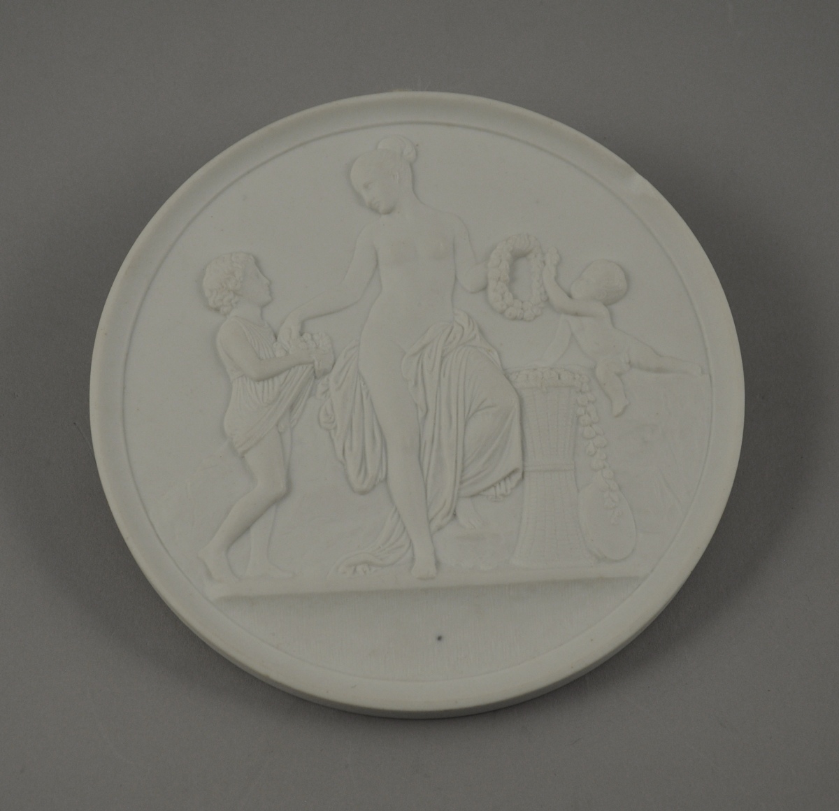 FRANCE (?). DEUX MÉDAILLONS circulaire formant paire en biscuit. Décor...