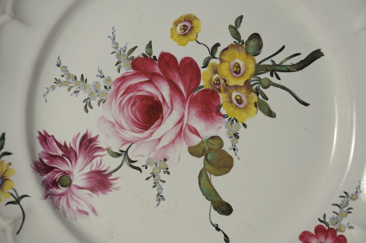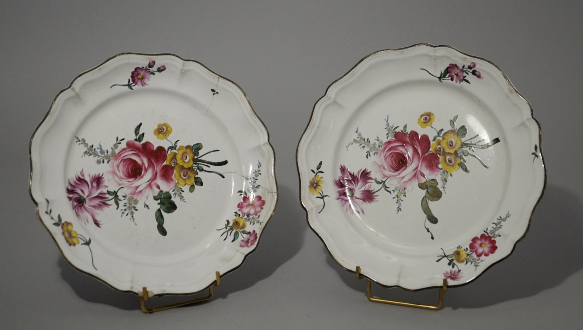 STRASBOURG, Joseph HANNONG. PAIRE D'ASSIETTES en faïence à décor de roses. L'aile mouvementée.
