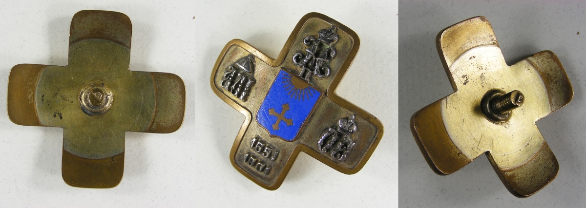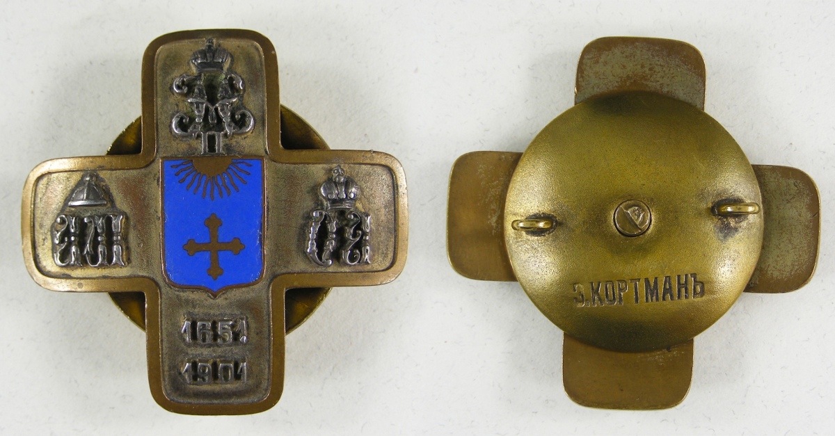 Russie - INSIGNE d'officier du 12e régiment de hussards de Akthyr de Sa Majesté Impériale la grande-duchesse Olga Alexandrovna en bronze doré, argenté et émaillé (griffures), fixation par vis (raccourcie) et écrou signé du fabricant E. Kortmann.