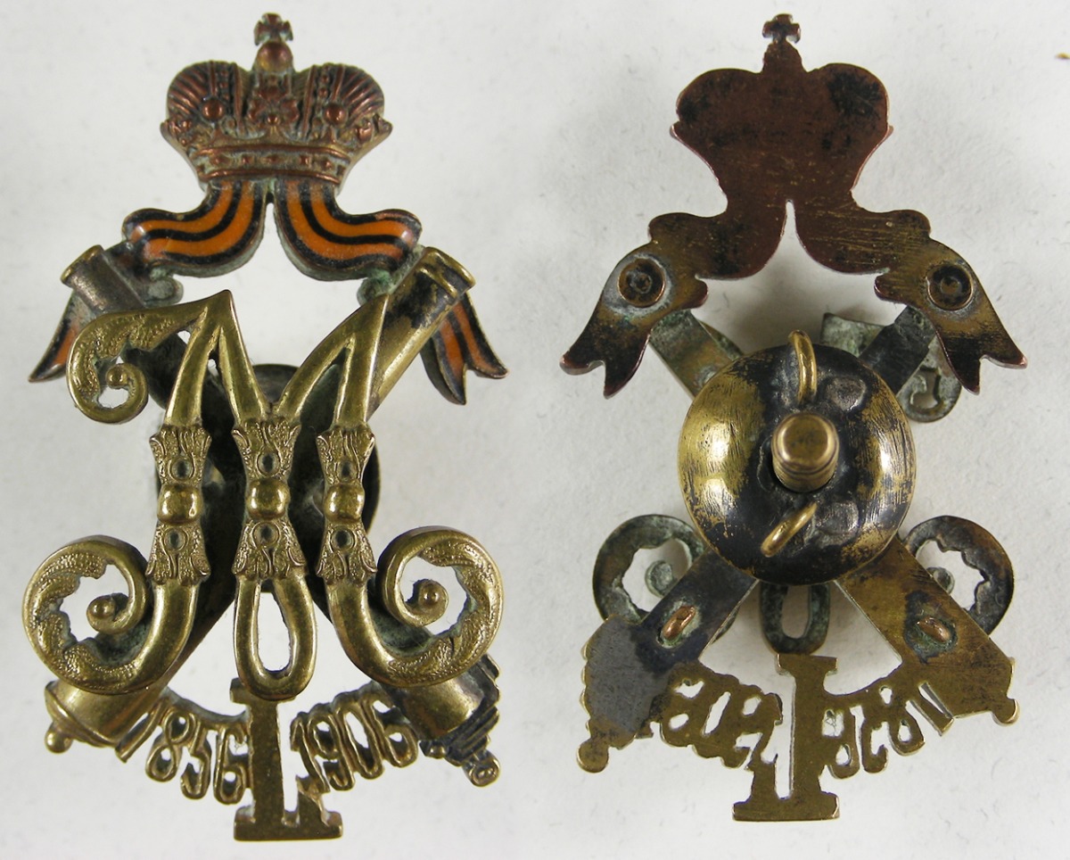 Russie - INSIGNE du 50e anniversaire de la nomination au rang de Generalfeldmarschall de Son Altesse Impériale le grand-duc Michel en 1906, bronze doré, argenté et émaillé, fixation par vis et écrou, sans signature de fabricant.