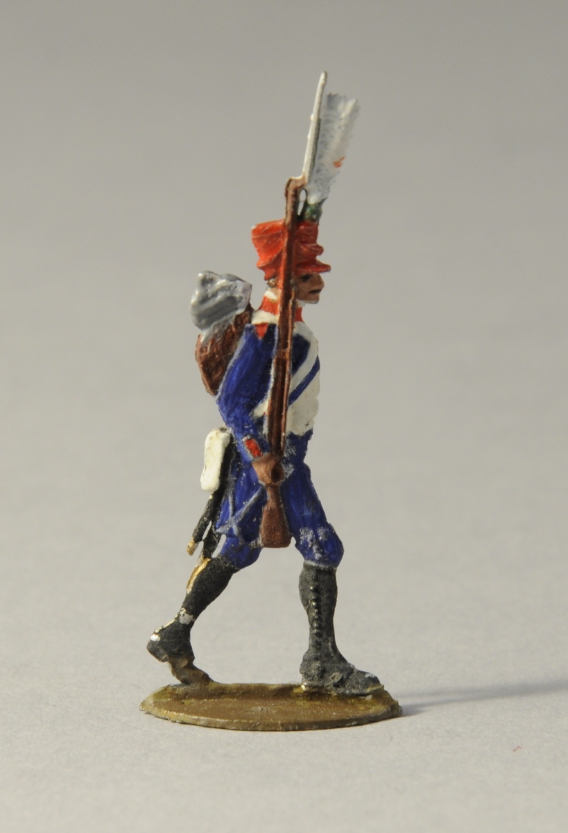 SOLDATS de PLOMB peints à la main. 22 pièces. Fantassins à uniforme bleu et plumet blanc.